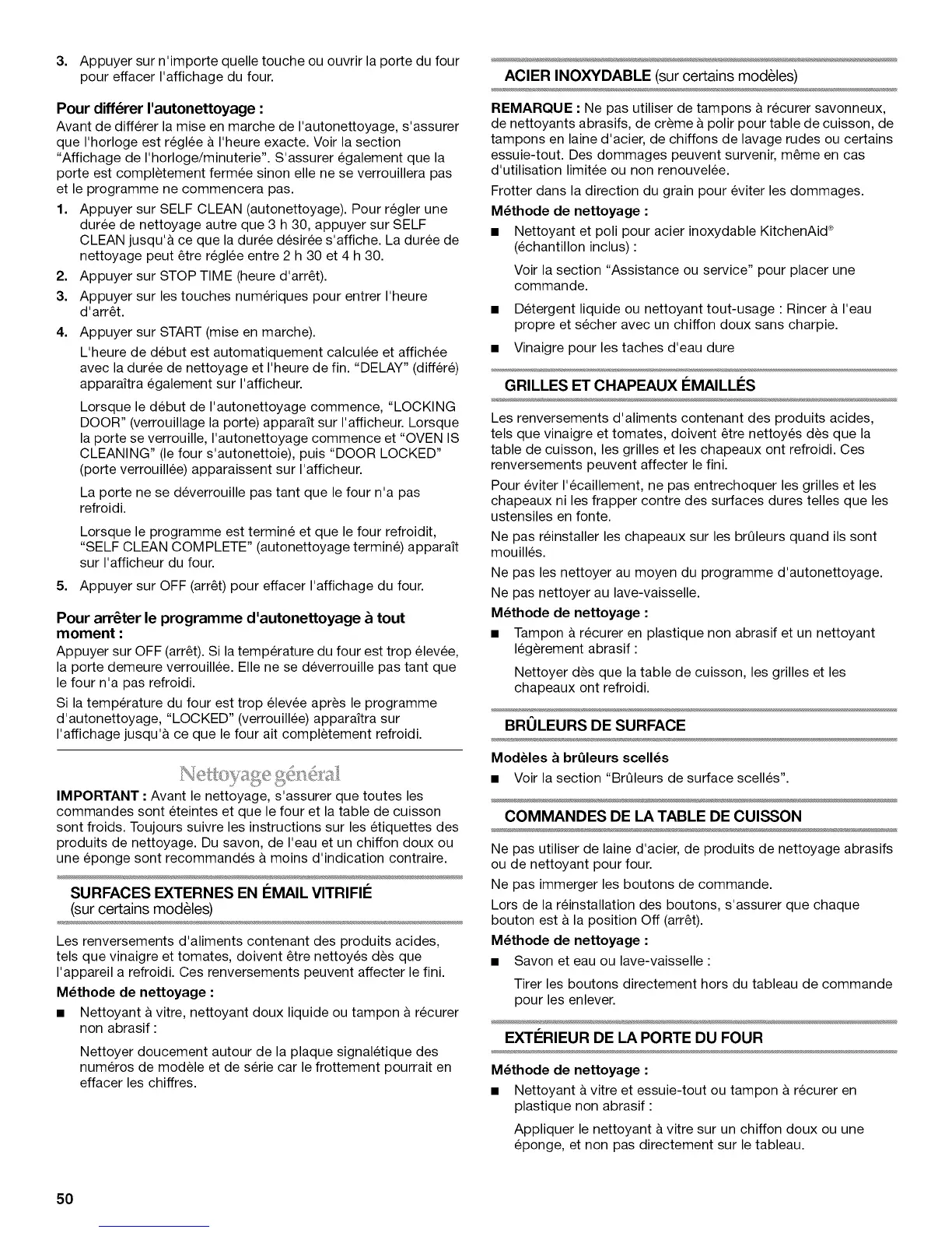 Avant de differer la mise en marche de I'autonettoyage, s'assurer