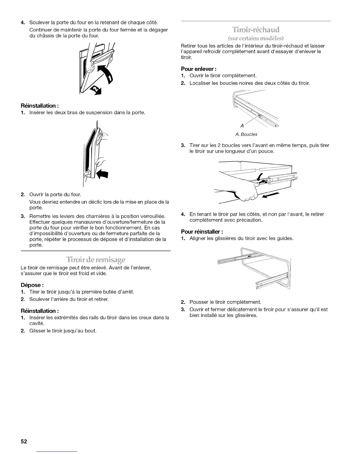 Le tiroir de remisage peut _tre enleve. Avant de I'enlever,
