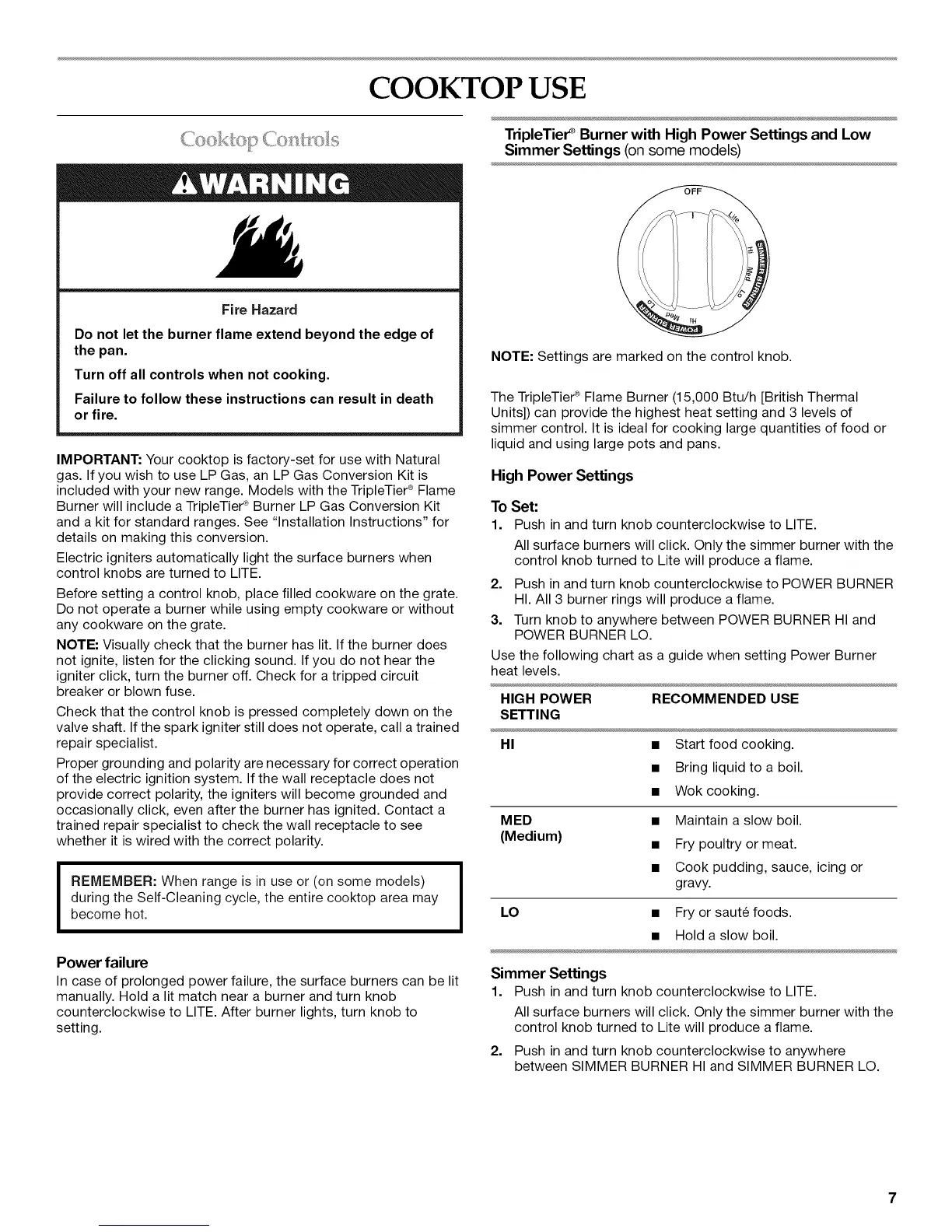 IMPORTANT: Your cooktop is factory-set for use with Natural