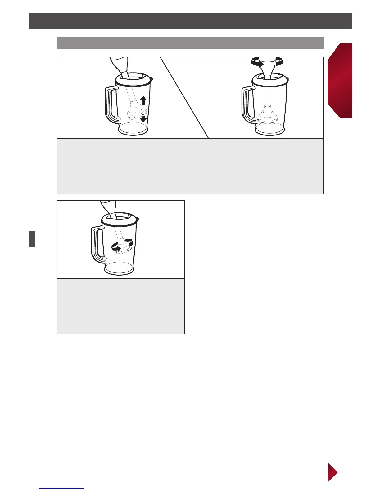 For better blending: Rest the Hand Blender on the bottom of the container momentarily, then
