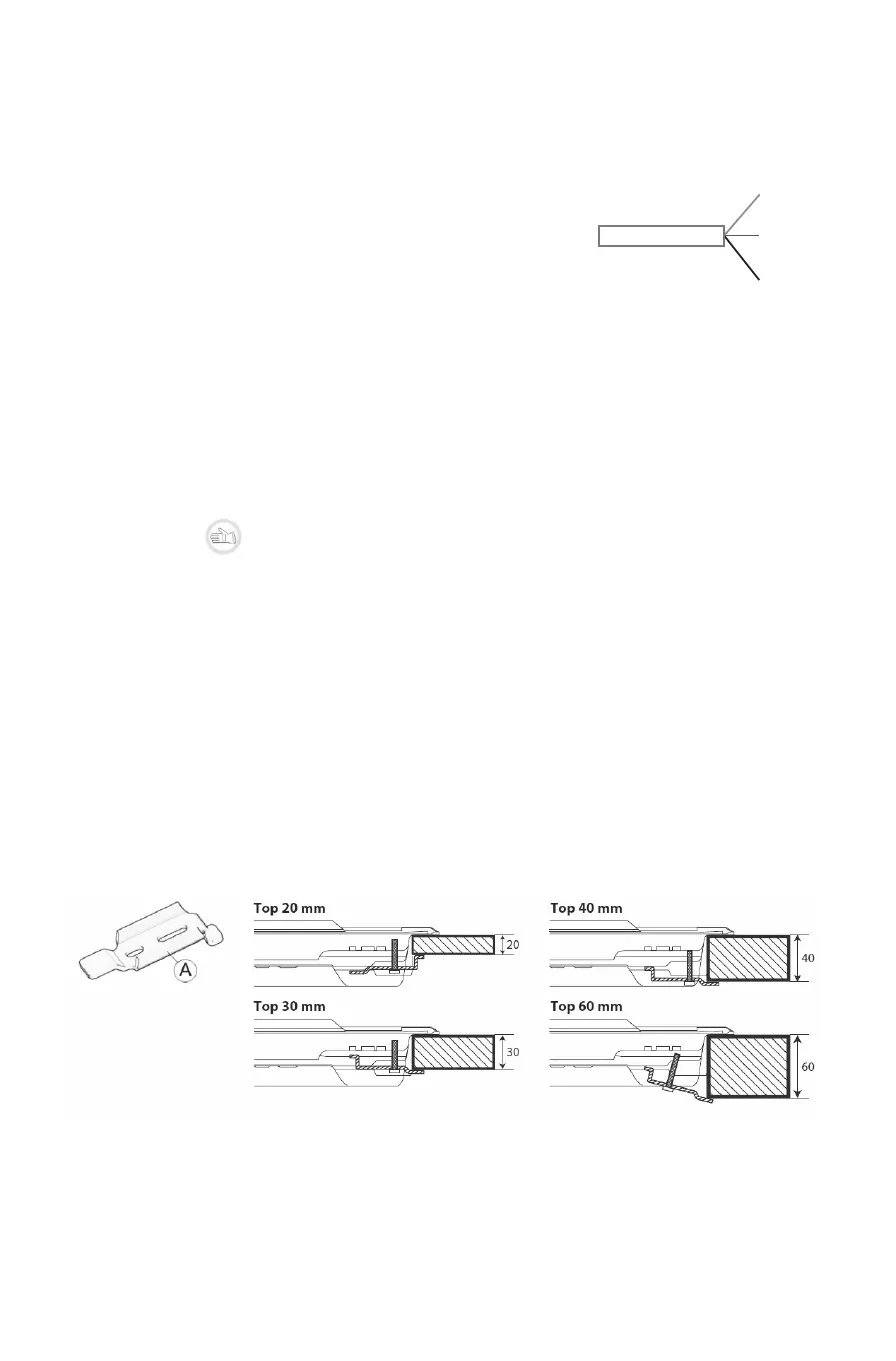 the arrow and fasten them by means of their screws in accordance with the thickness of the worktop (see