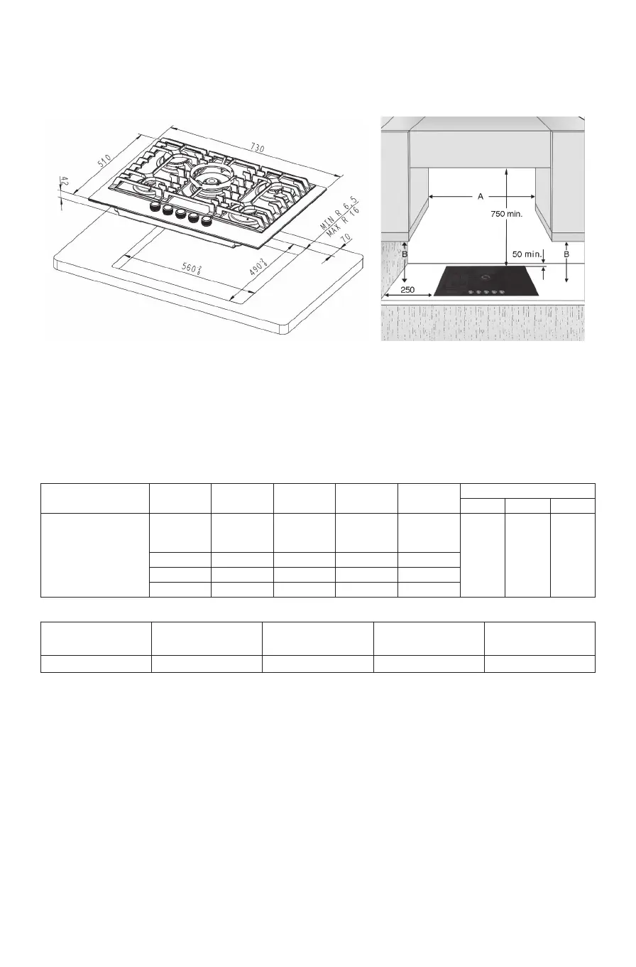 Note: If the distance “A” between the wall cupboards in the kitchen is between 600mm and 730mm, the