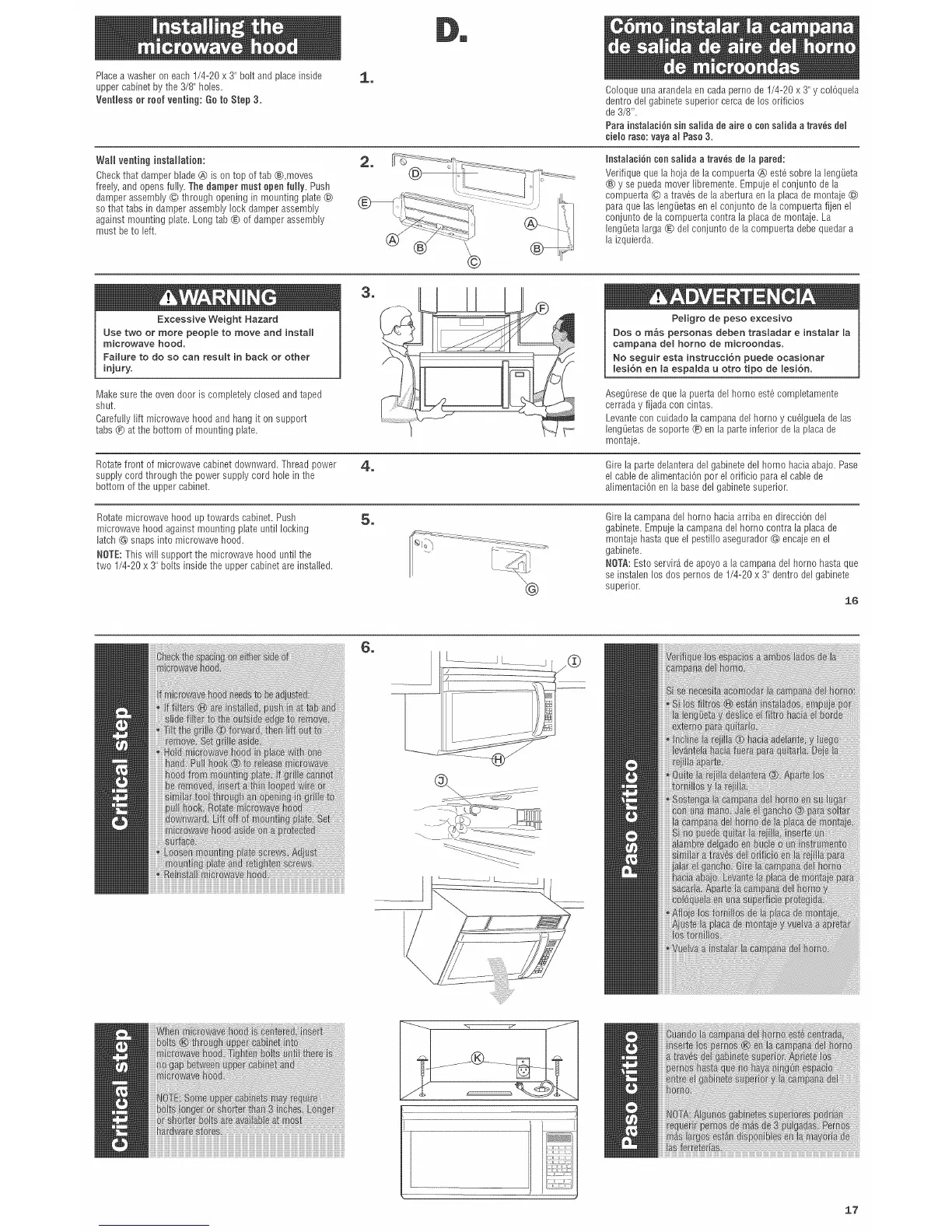 NOTE:This wiii support the microwave hood untii the