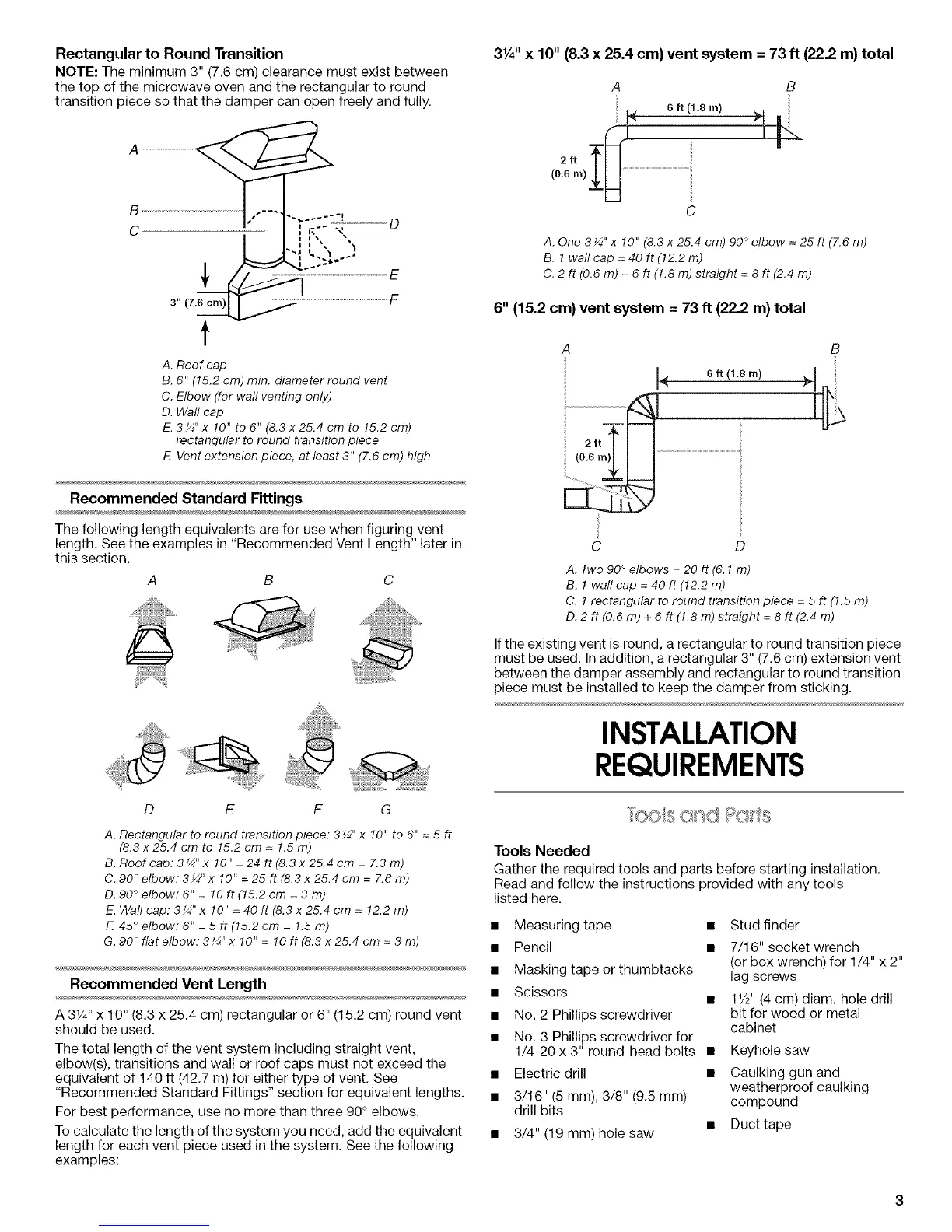must be used. In addition, a rectangular 3" (7.6 cm) extension vent