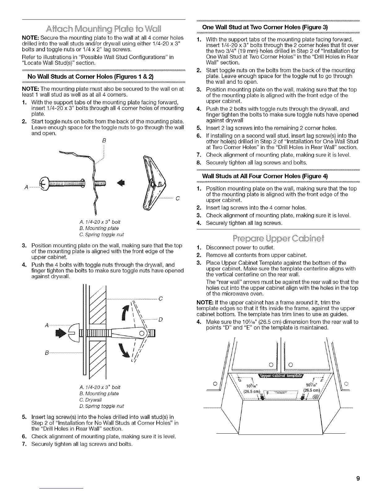 Refer to illustrations in "Possible Wall Stud Configurations" in