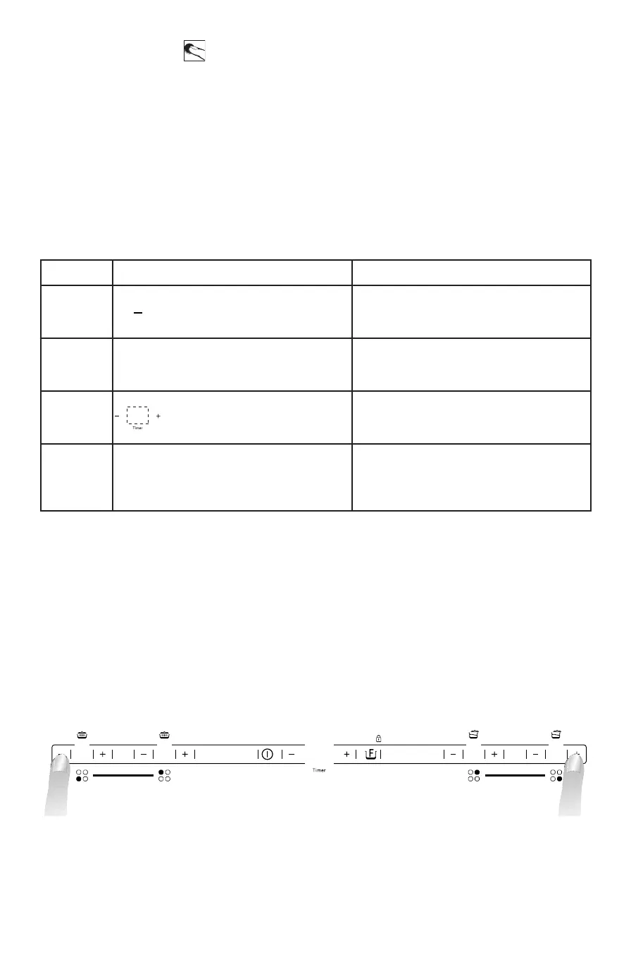 After switching the hob on, press and hold the “-” of the rst cooking zone and the external button on the