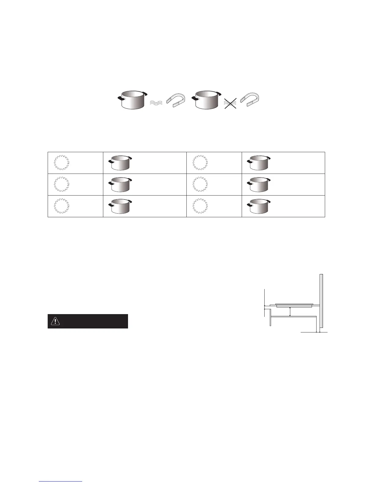 Use a magnet to check whether pots or pans are suitable for use on the induction hob: pots are unsuitable