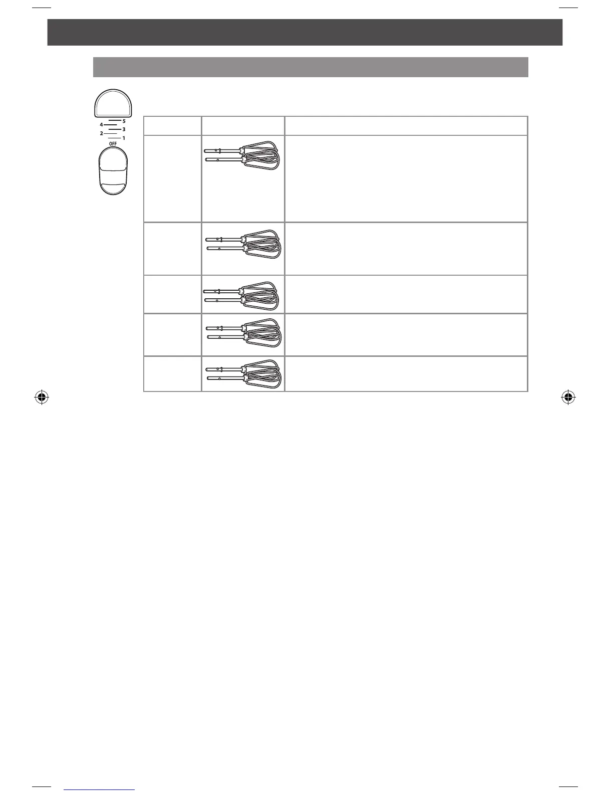 Guía para el control de velocidad - Batidoras manuales de 5 velocidades