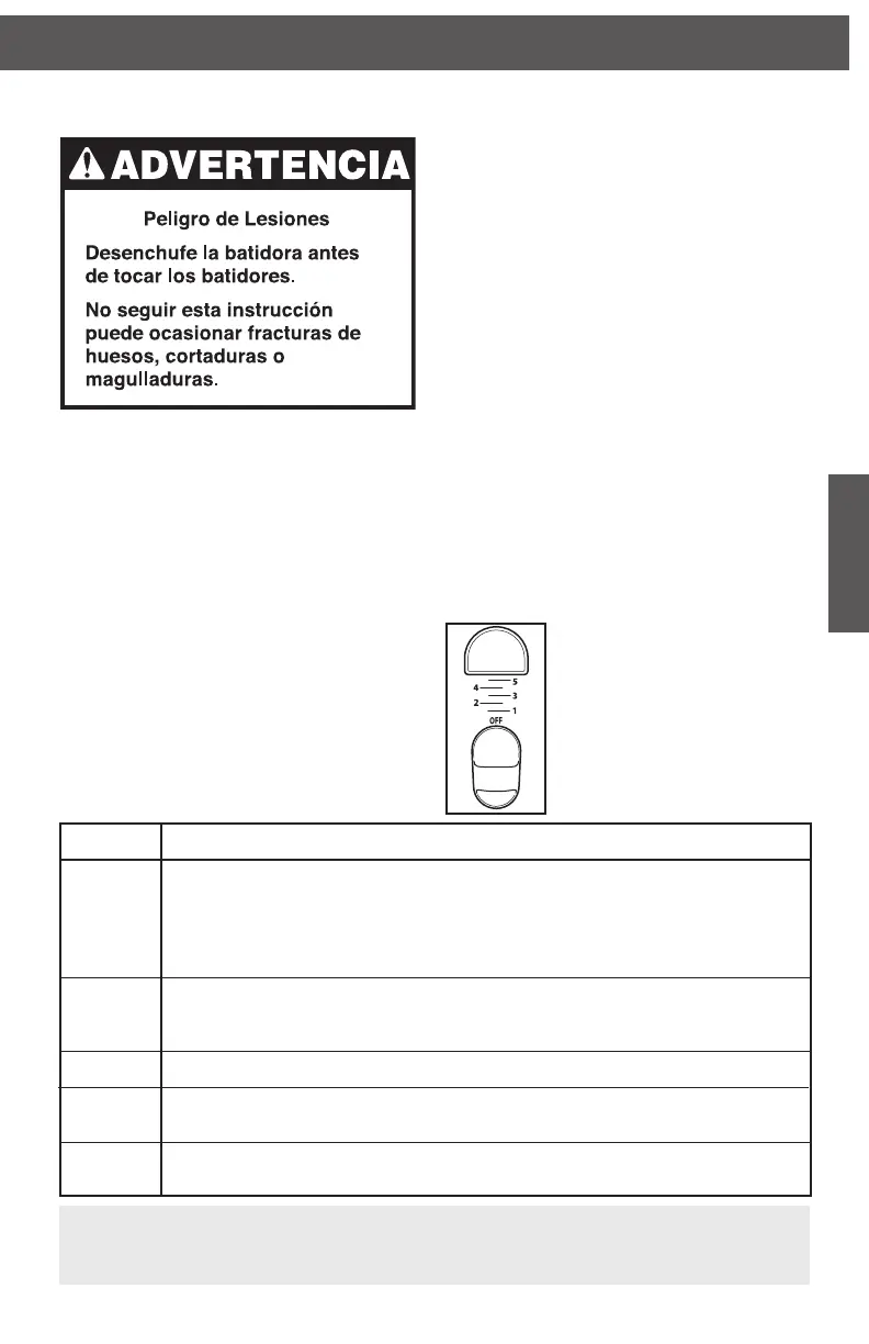 4. Para aumentar la velocidad de la batidora