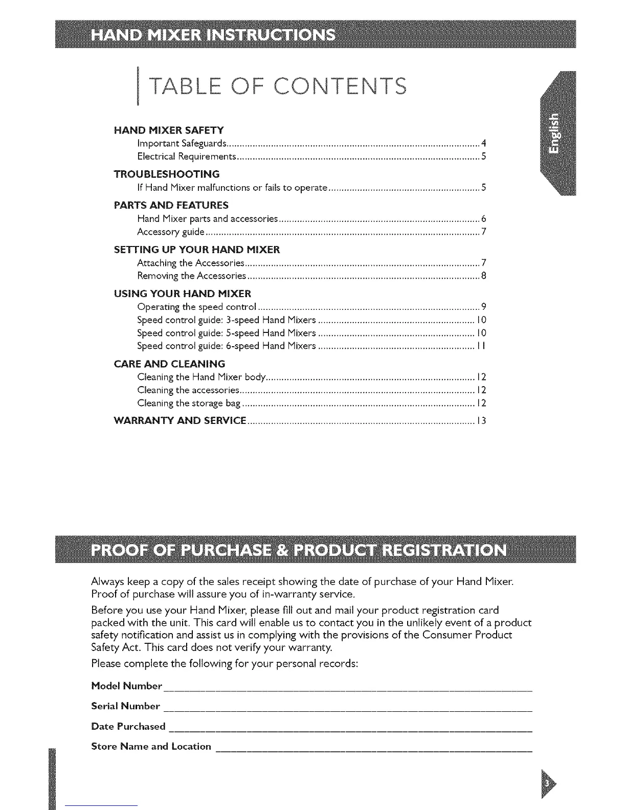 Before you use your Hand Mixer, please fill out and mail your product registration card