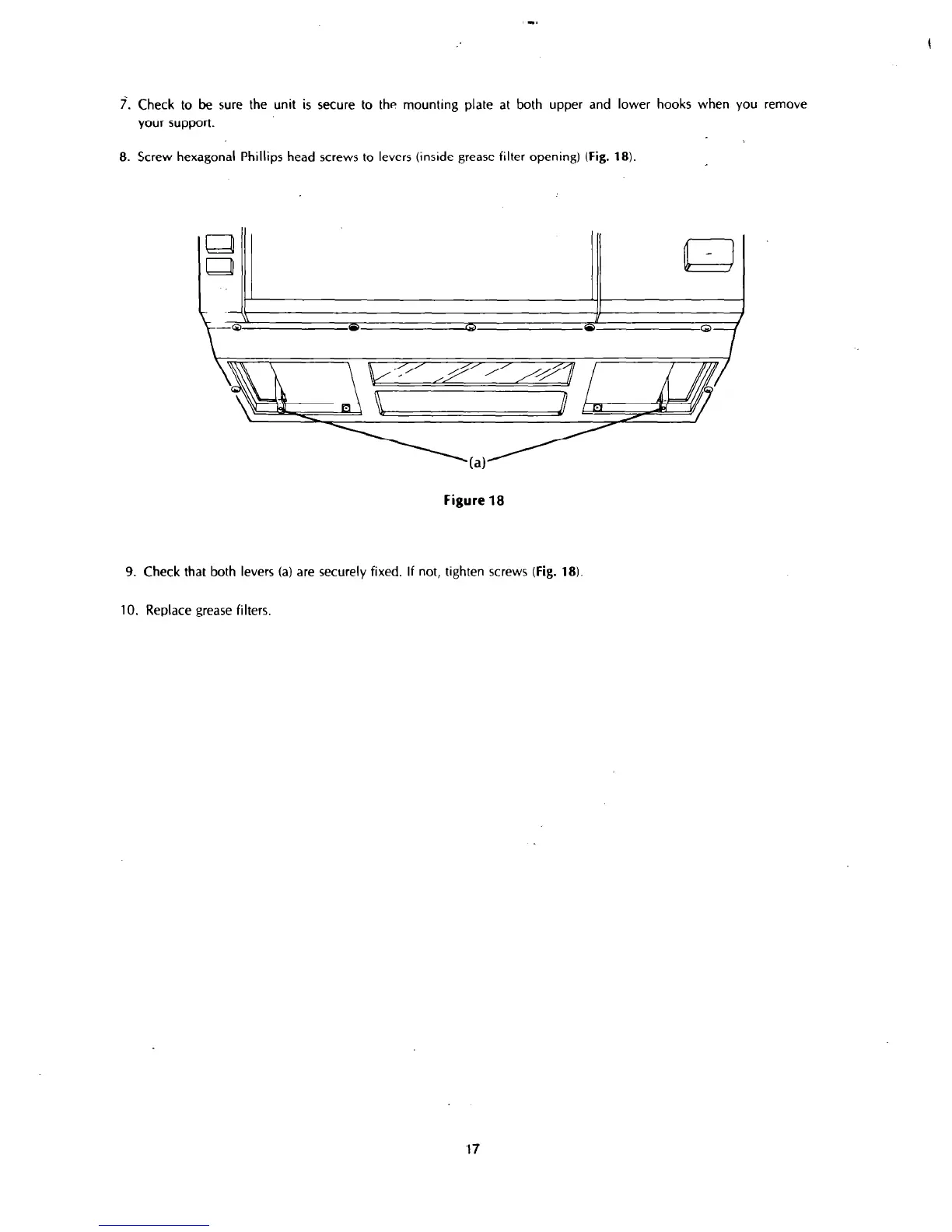 8. Screw hexagonal Phillips head screws to levers (inside grease filter opening)