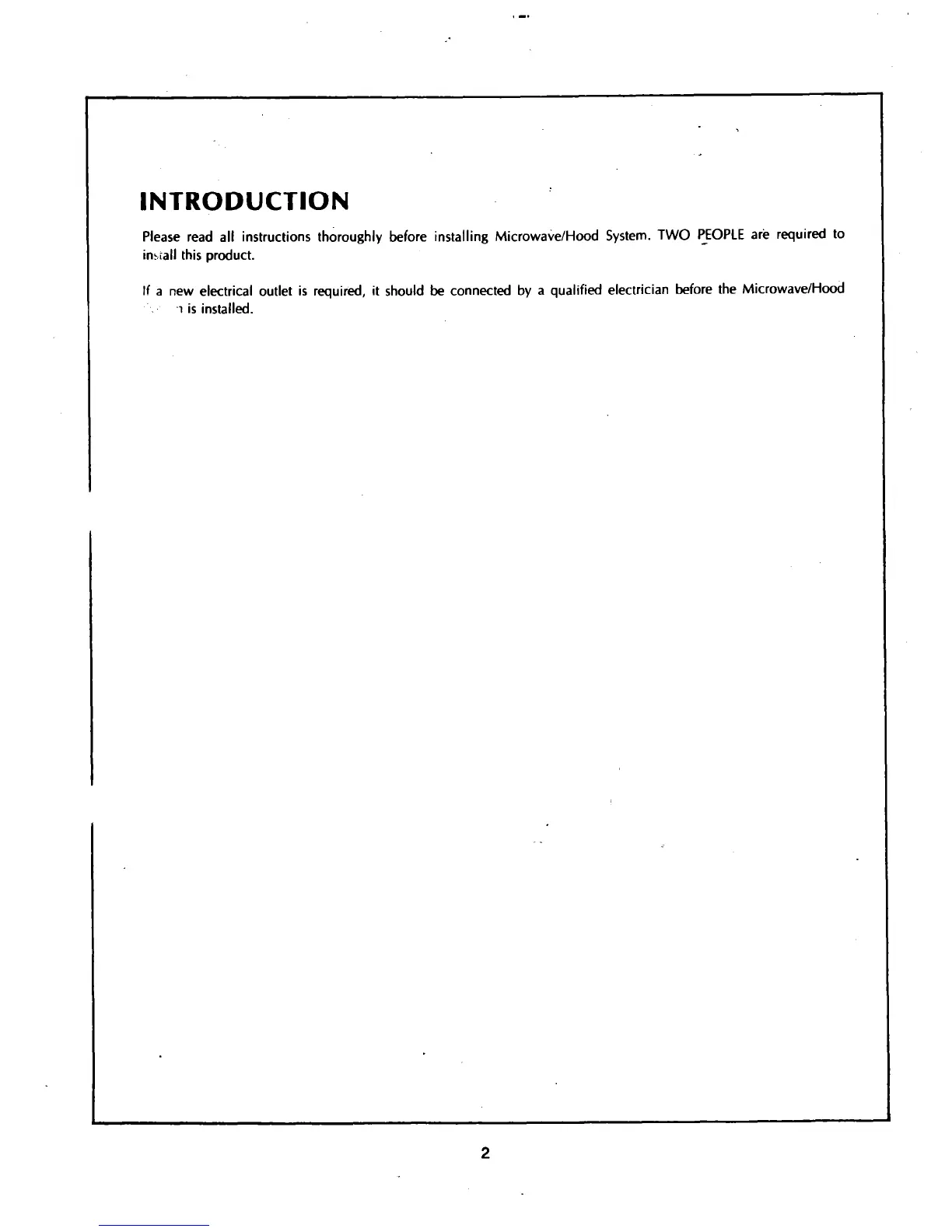 Please read all instructions thoroughly before installing Microwave/Hood System. TWO PEOPLE are required to