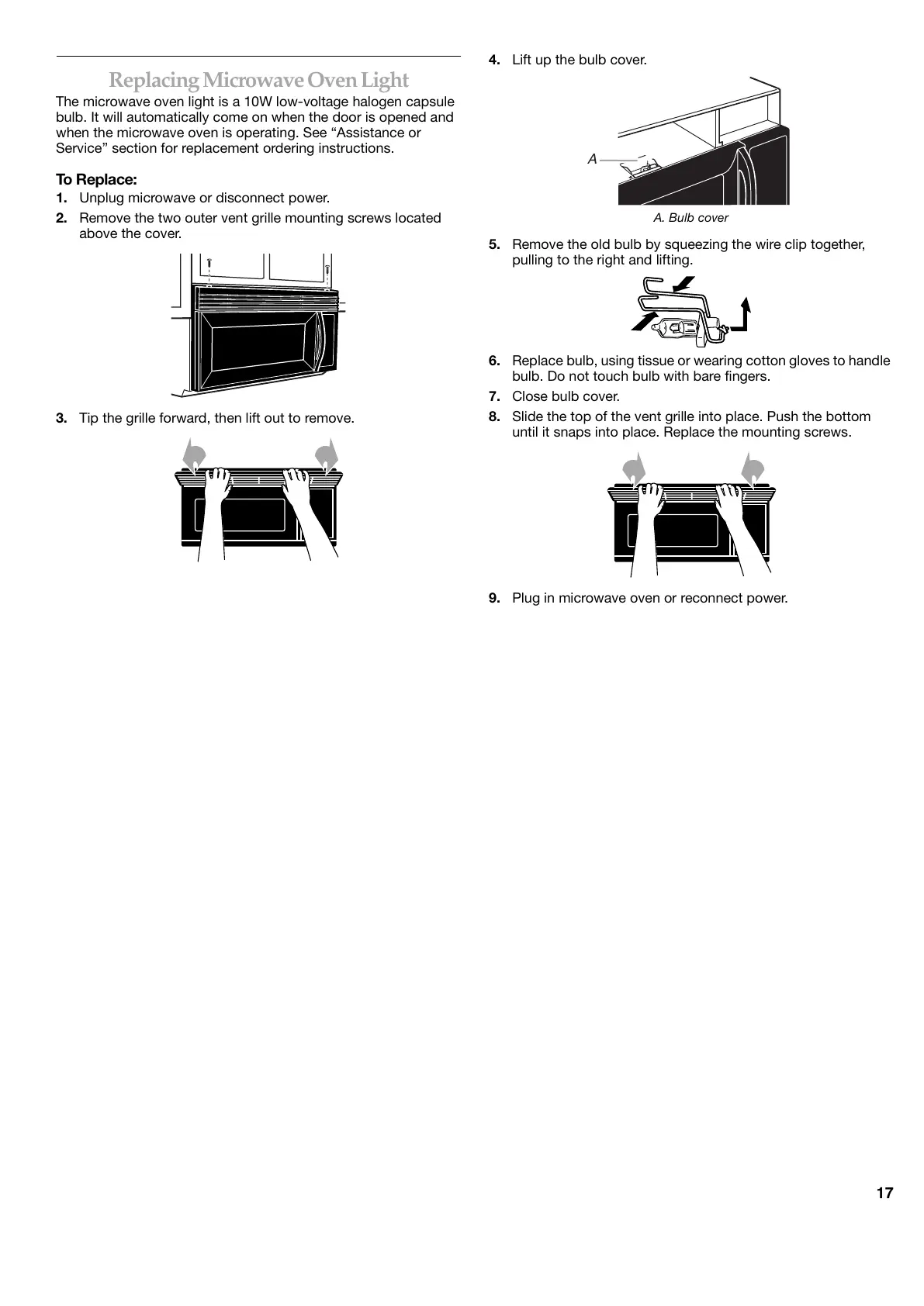 6. Replace bulb, using tissue or wearing cotton gloves to handle