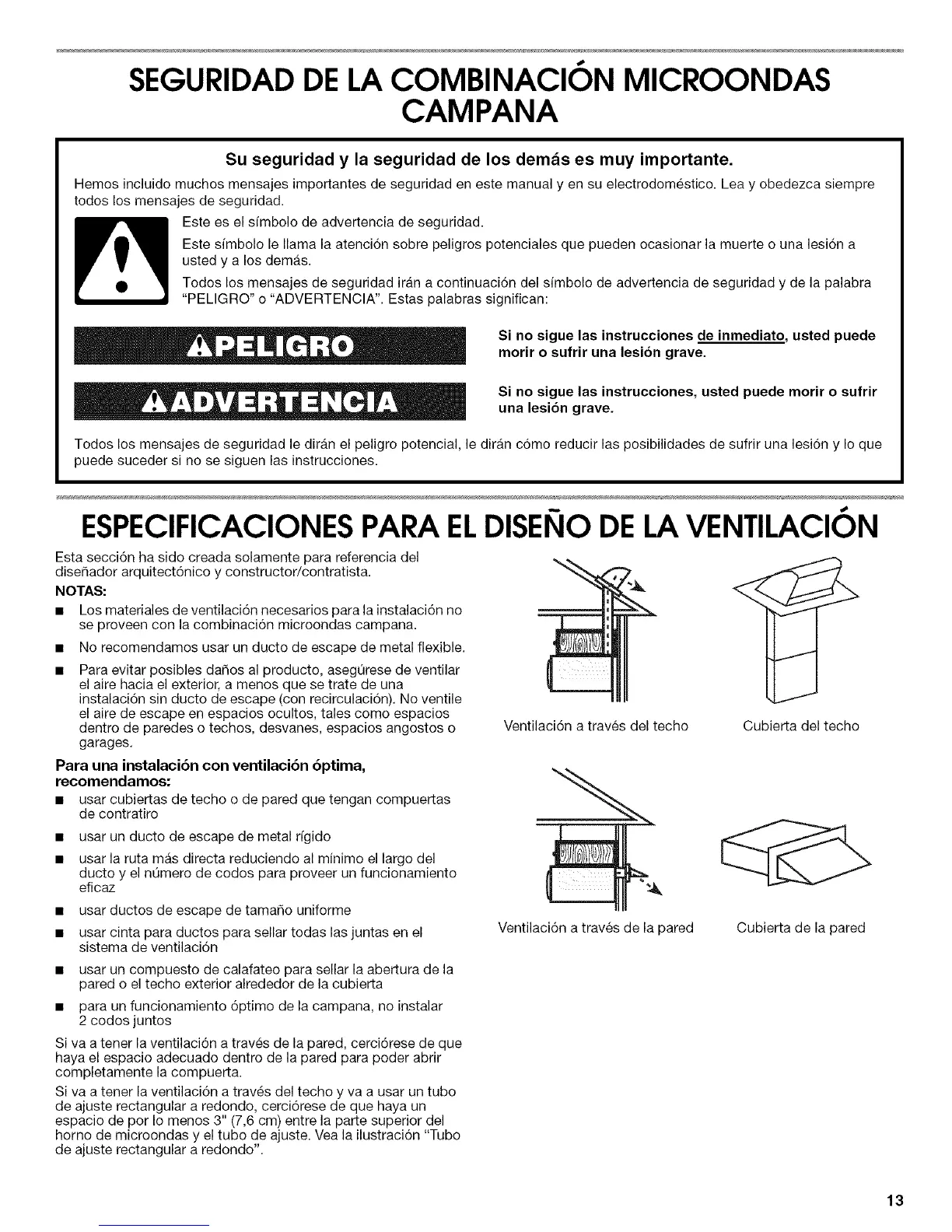 Siva a tener la ventilaci6n a traves de la pared, cerci6rese de que