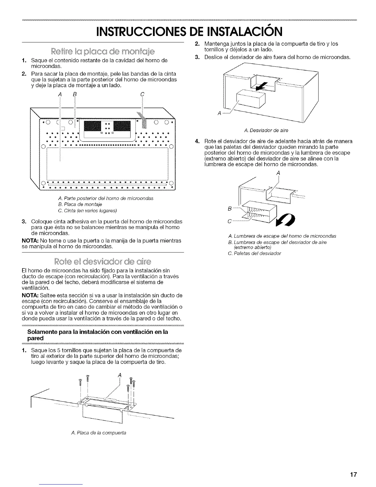 NOTA: Saltee esta secci6n siva a usar la instalaci6n sin ducto de