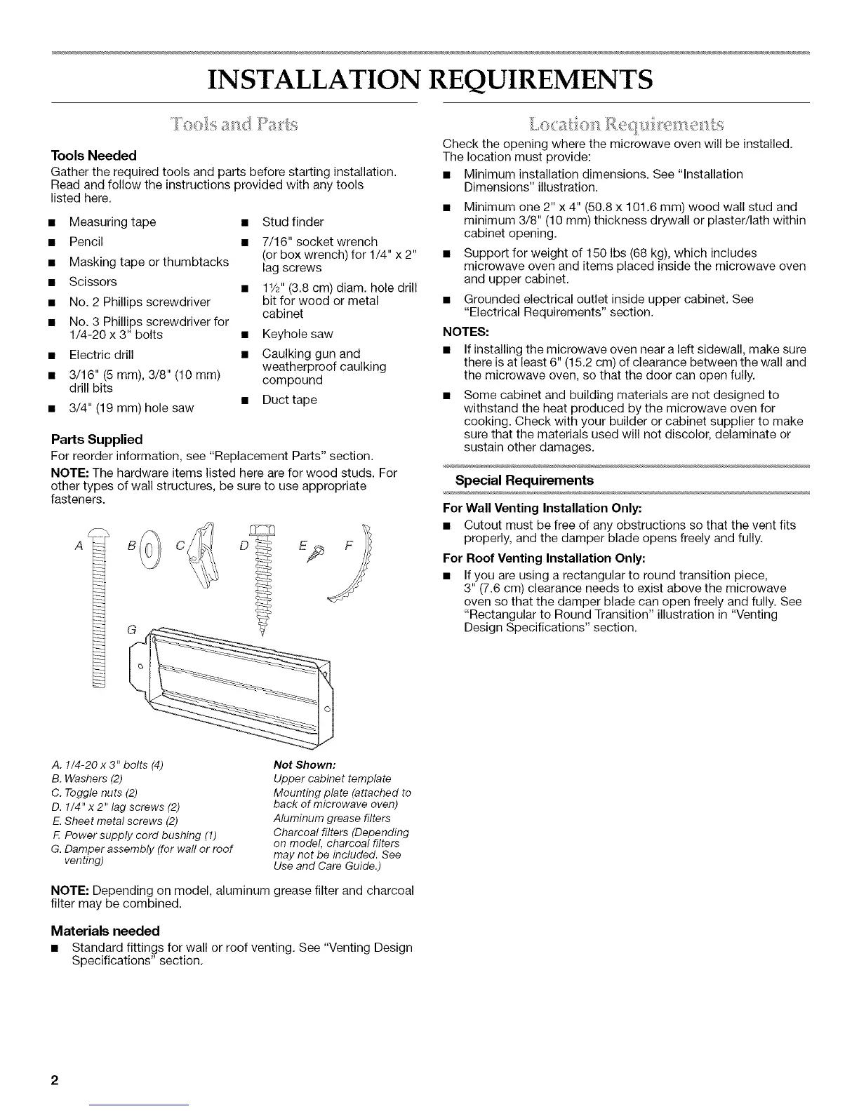• Minimum one 2" x 4" (50.8 x 101.6 mm) wood wall stud and