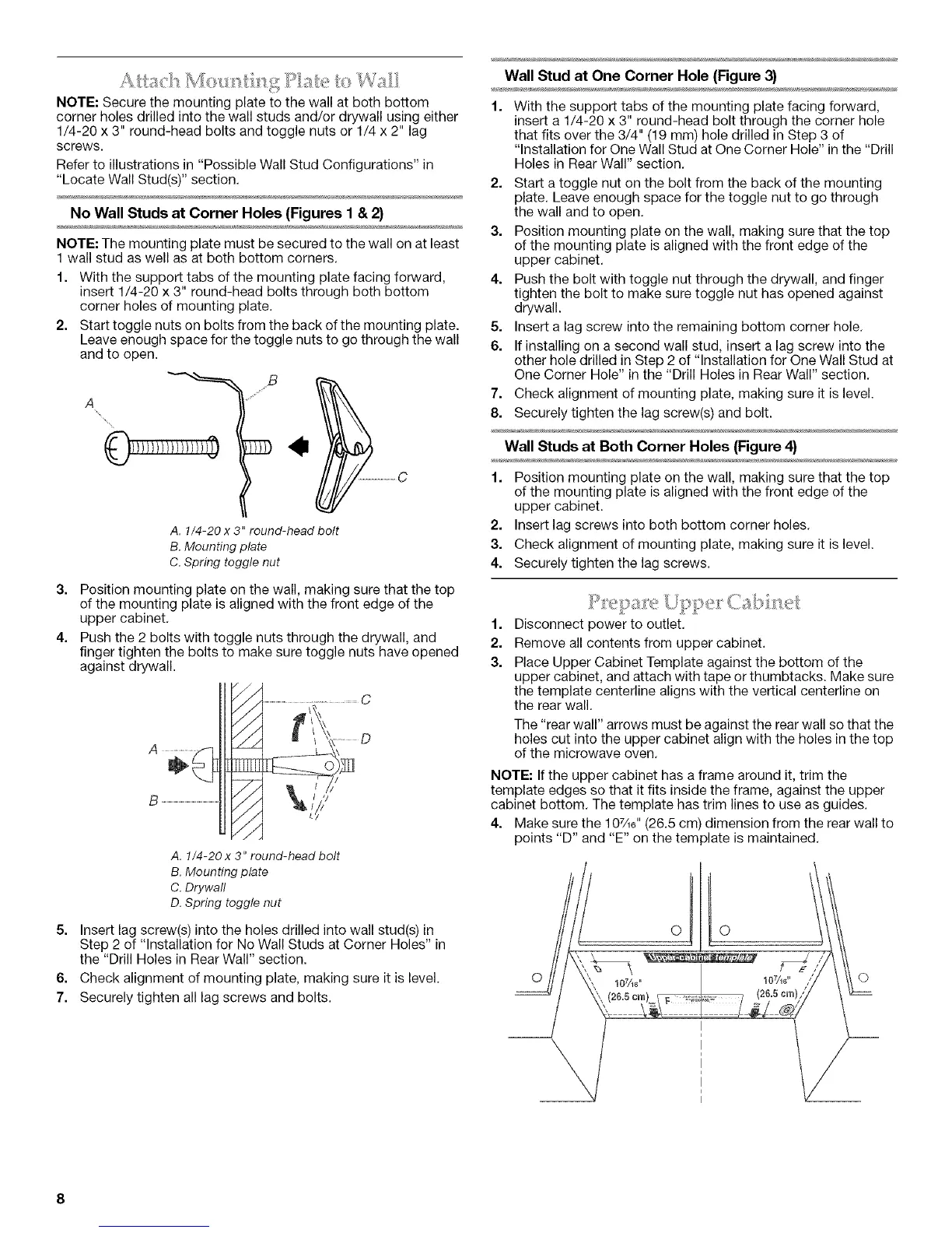 No Wall Studs at Corner Holes (Figures I & 2}