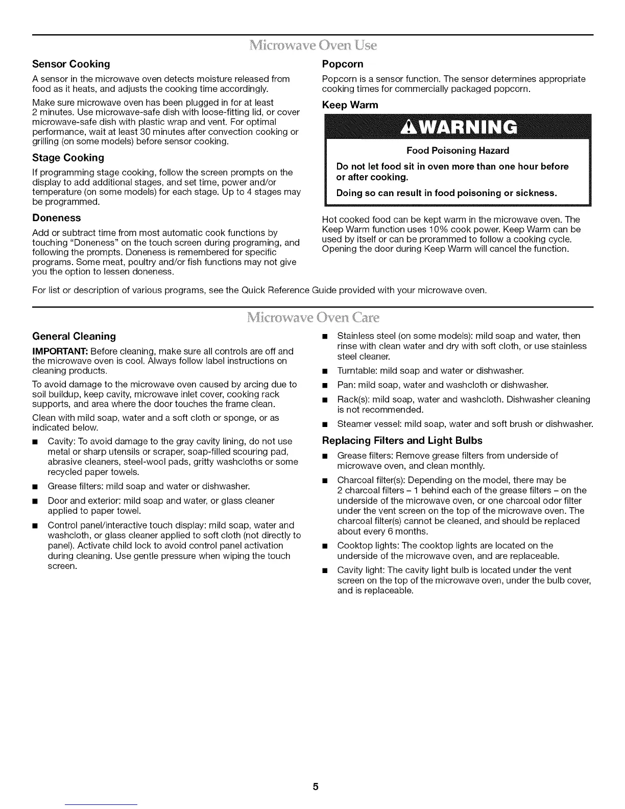 Replacing Filters and Light Bulbs