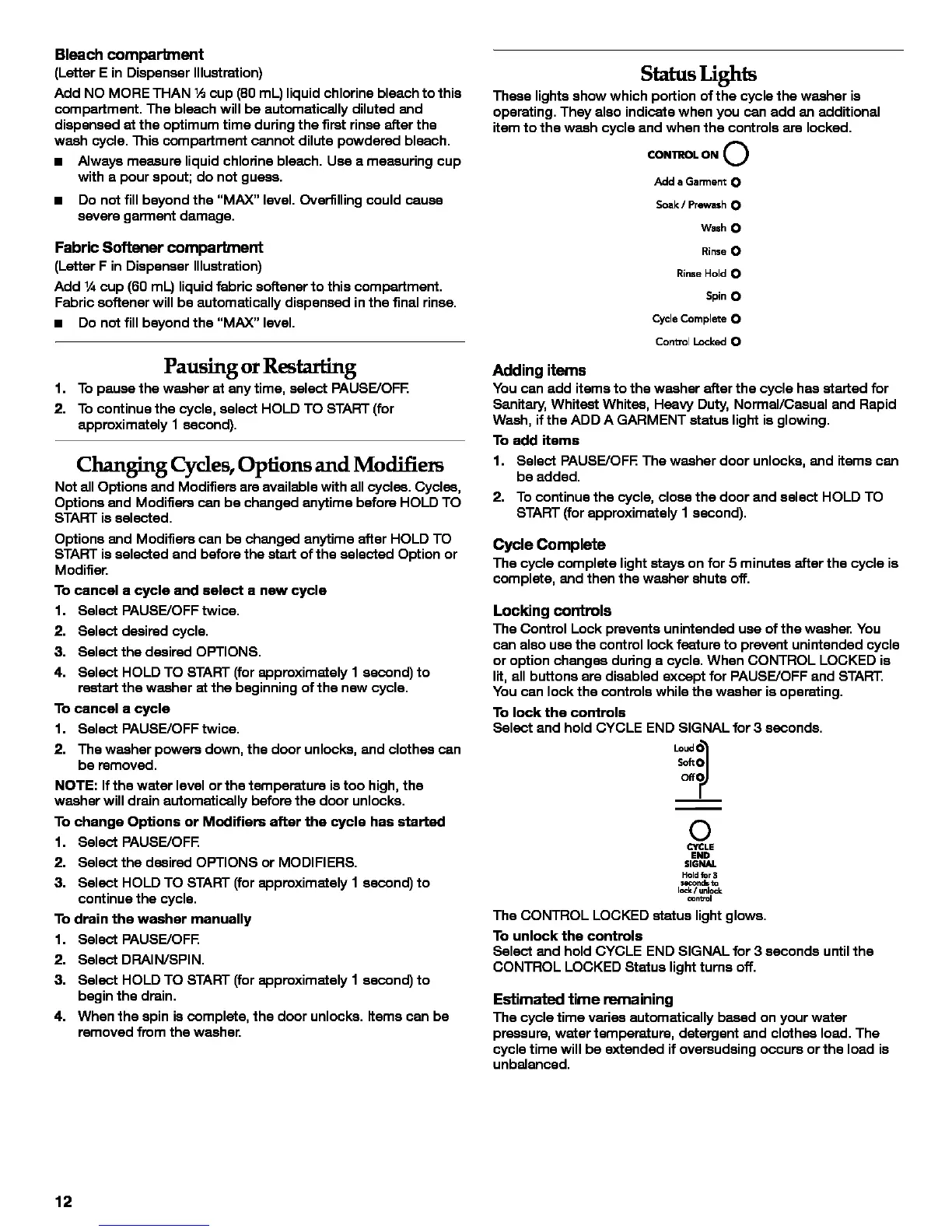 wash cycle. This compartment cannot dilute powdered bleach.