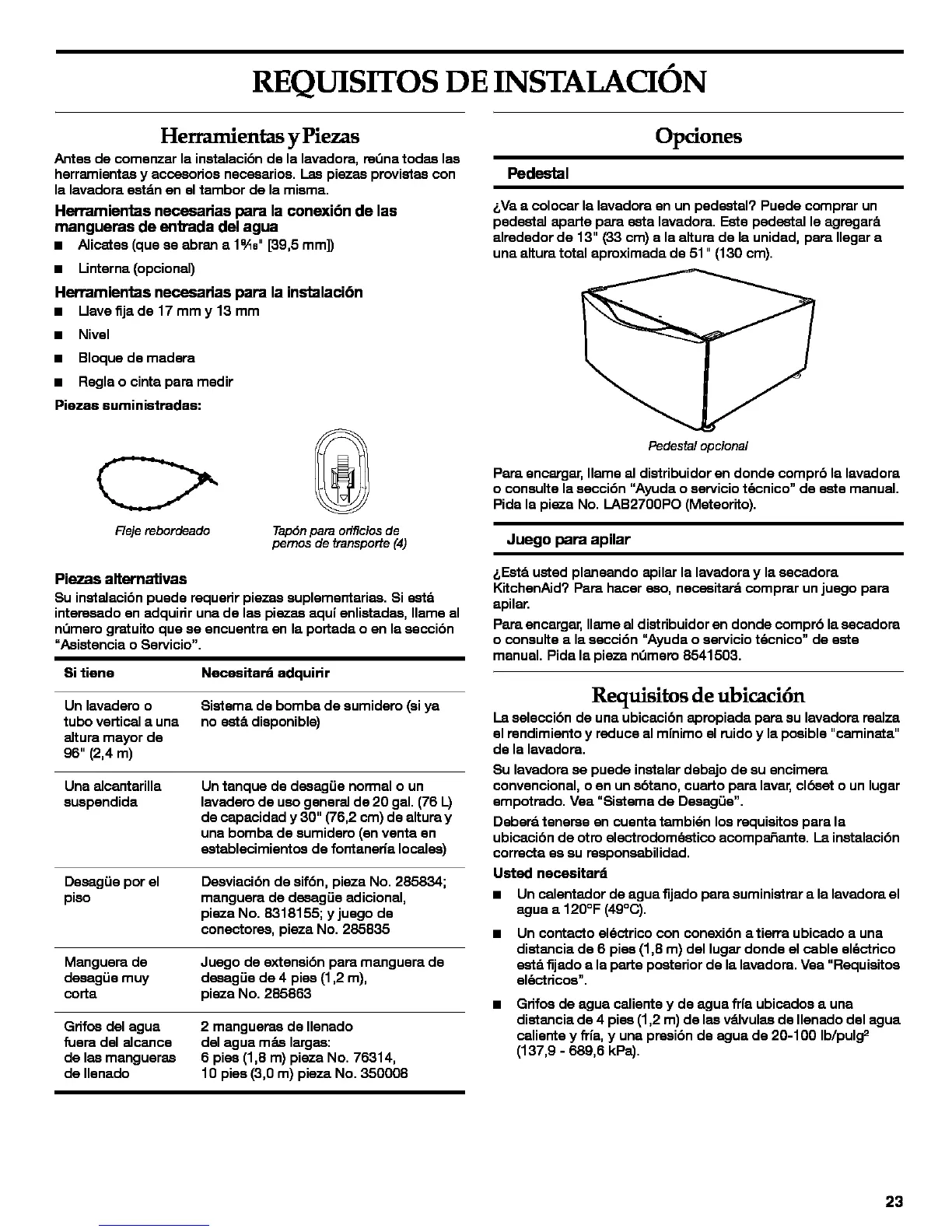 6Va a colocar la lavadora on un pedestal? Puede compmr un