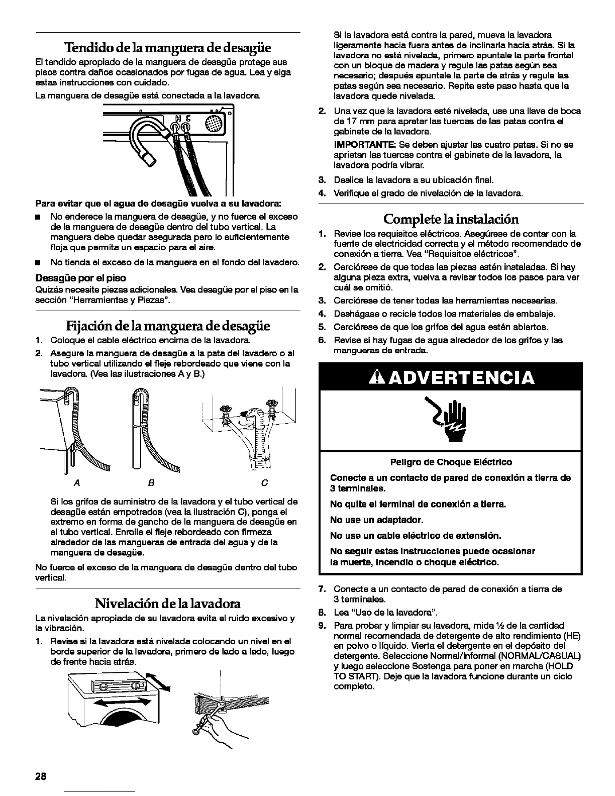 Nivelaci6n de la lavadora