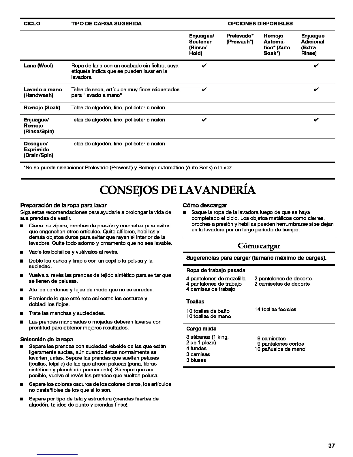 *No se puede seleccionar Prelavado (Prewseh) y Remojo automdtico (Auto Soak) a la vaz.