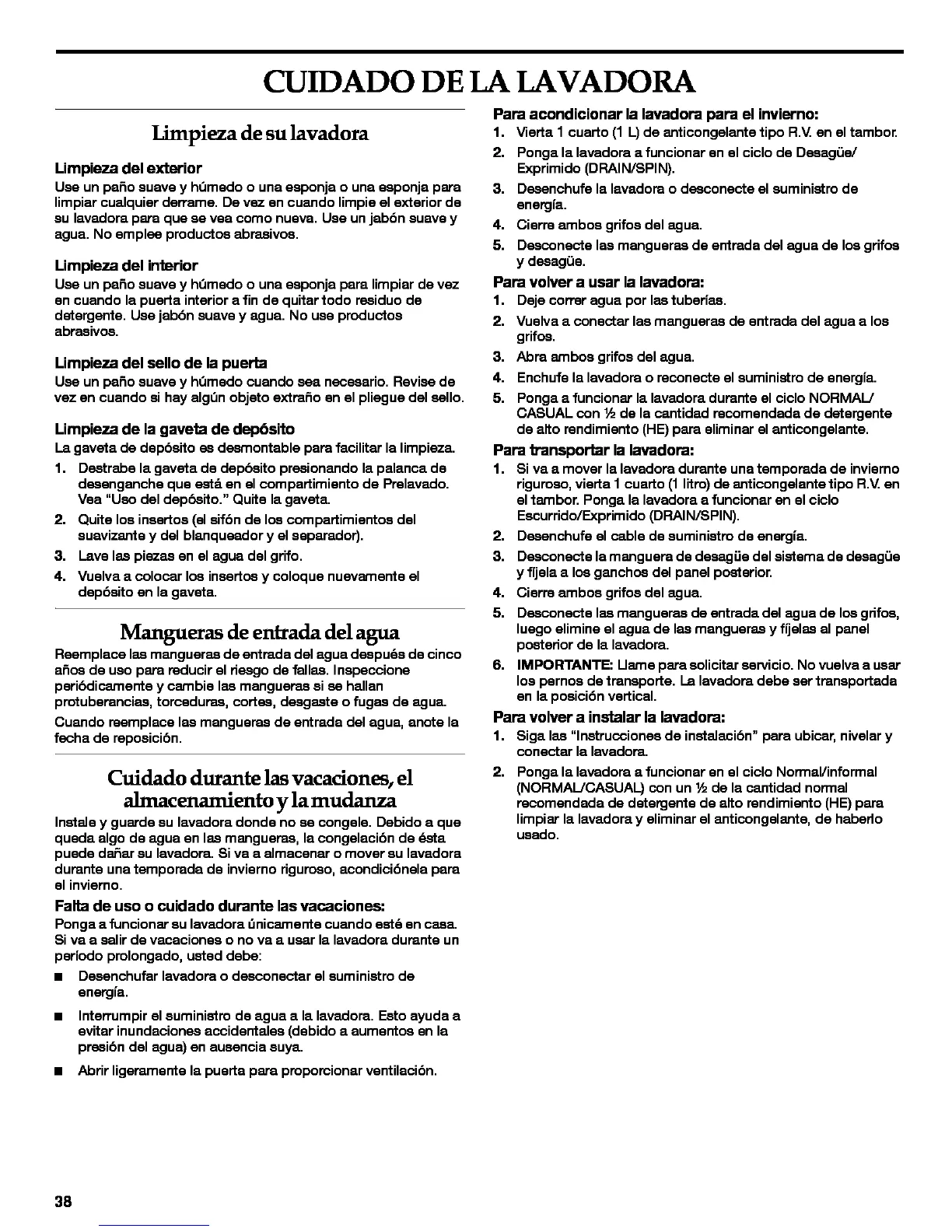 puede da_ar su lavadora. Siva a almacenar o mover su lavadora