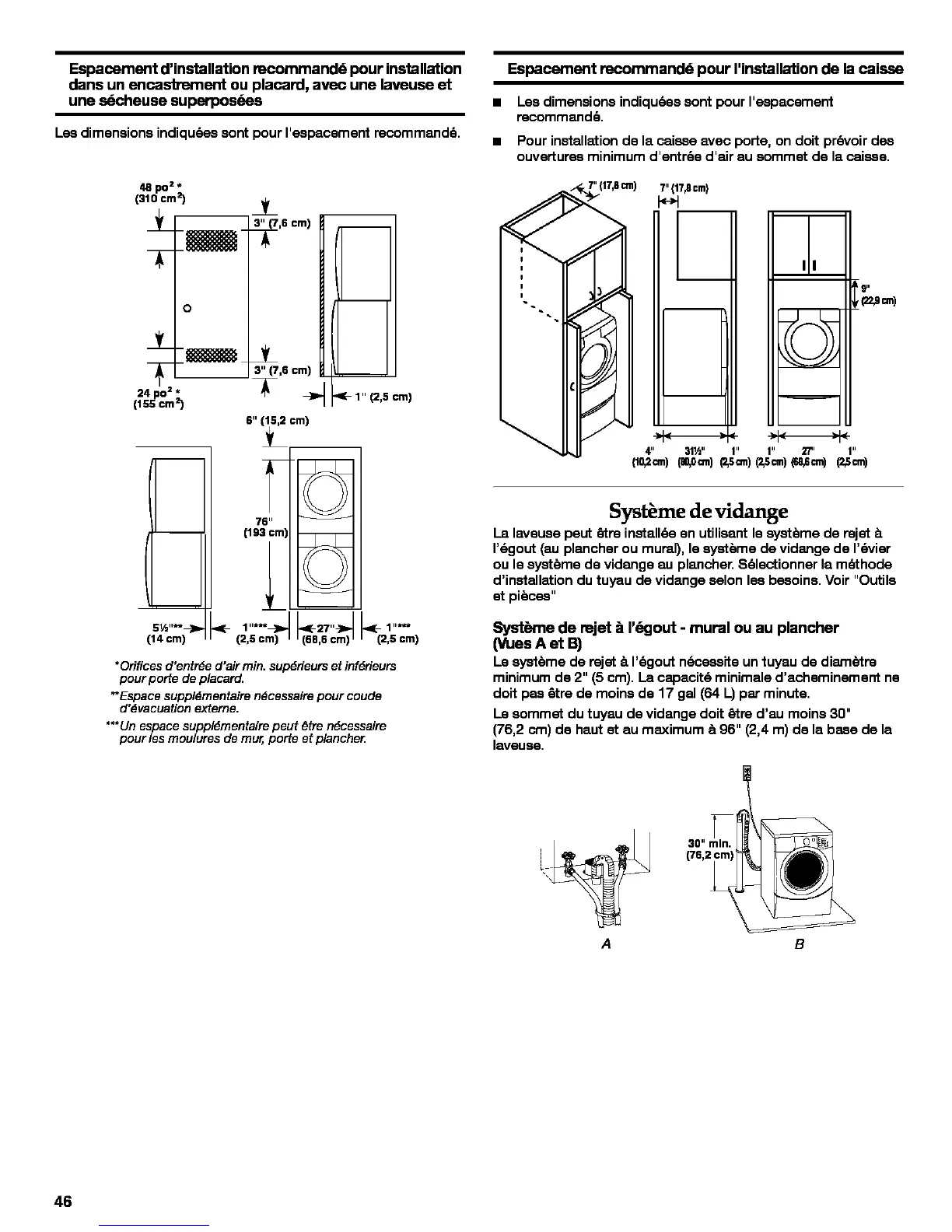 Le eommet du tuyau de vidange doit _tre d'au moins 30"