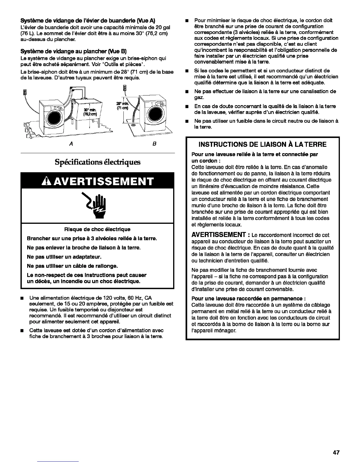 de la laveuse, v6rifier aupr6s d'un 61ectricienqualifi6.