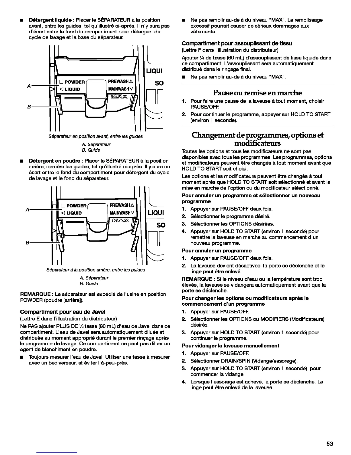 1. Pour faire une pause de la laveuse _.tout moment, choisir