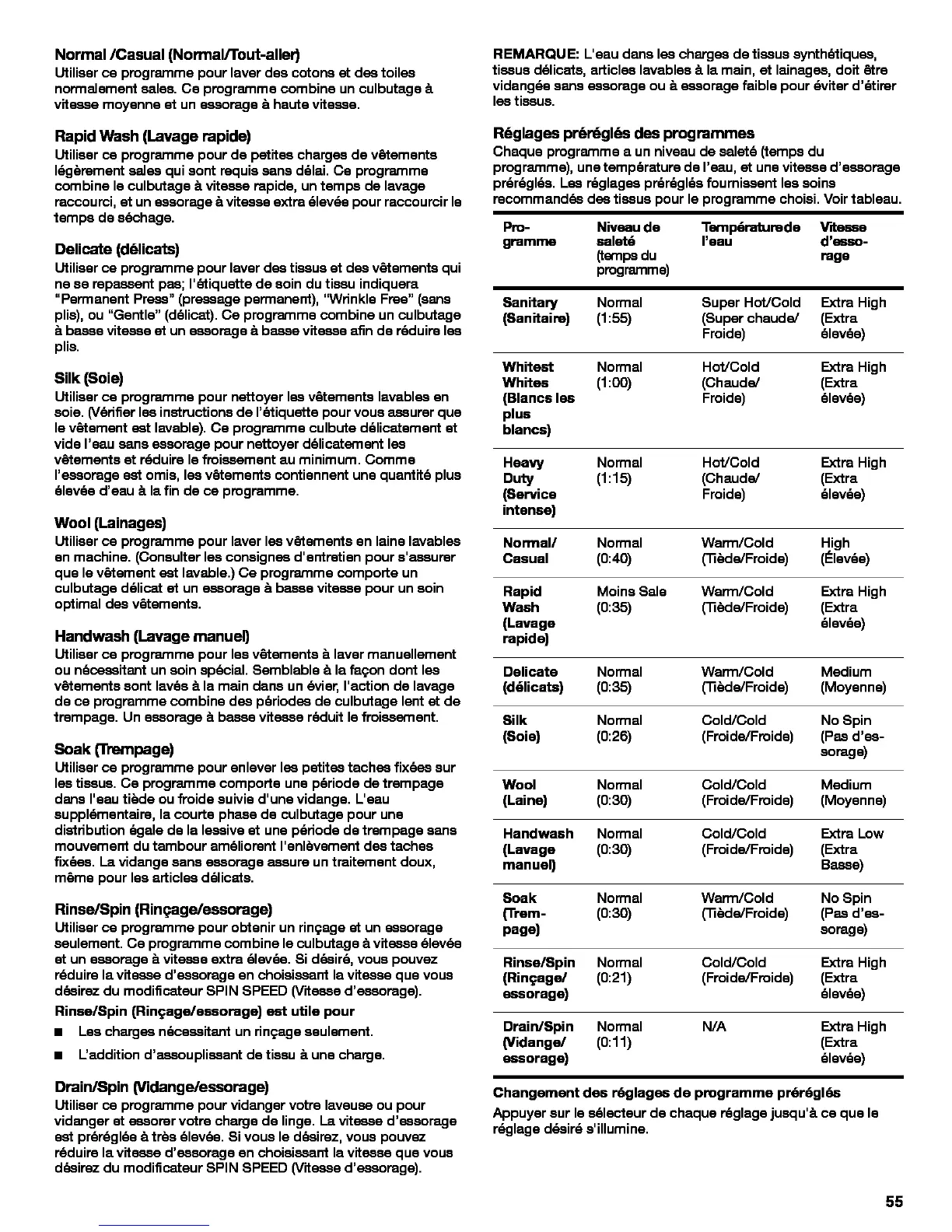 Utilieer ce programme pour lee v_tements _.laver manuellement