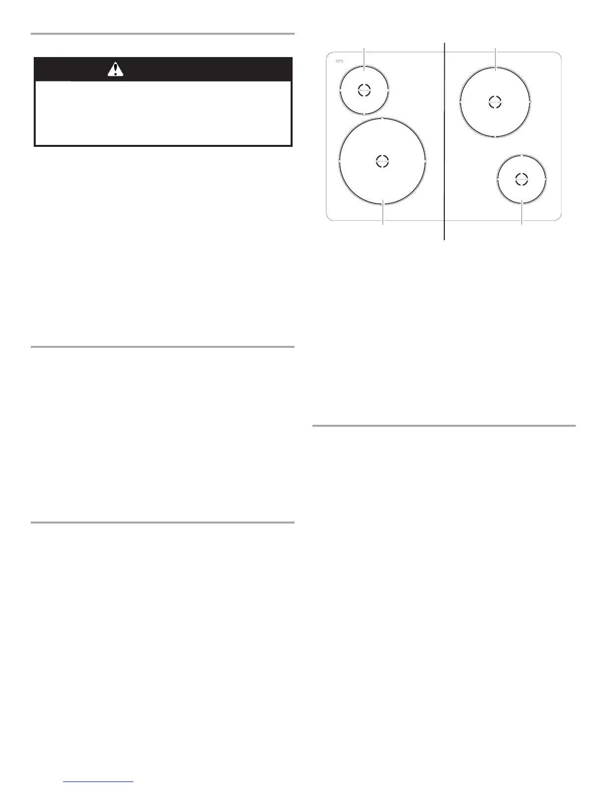 ■ Avoid storing jars or cans above the cooktop. Dropping a heavy