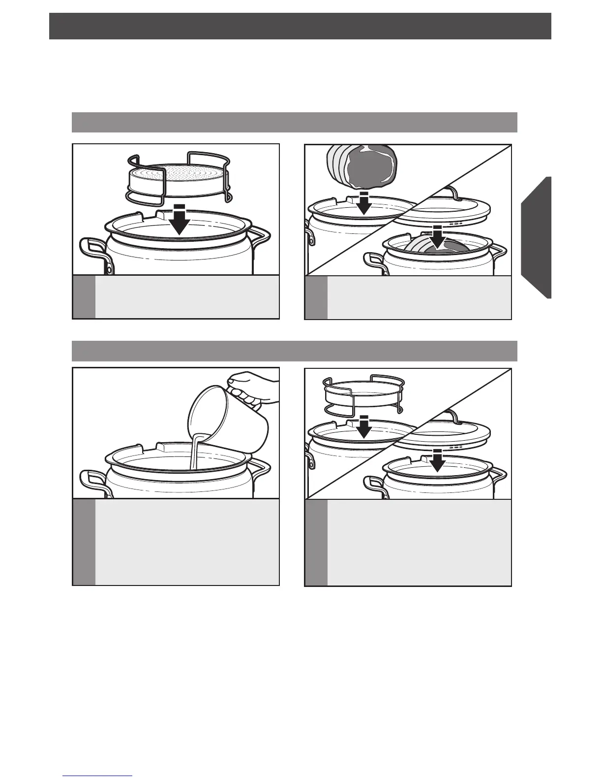 REMARQUE : Le panier à vapeur et la grille de rôtissage ne peuvent pas être utilisés avec le