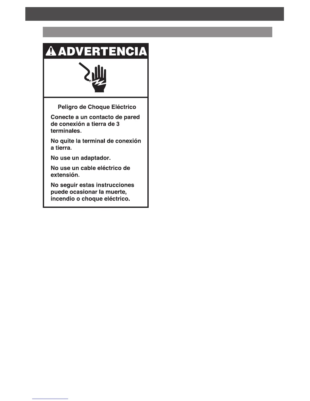No use un cable eléctrico de extensión. Si el