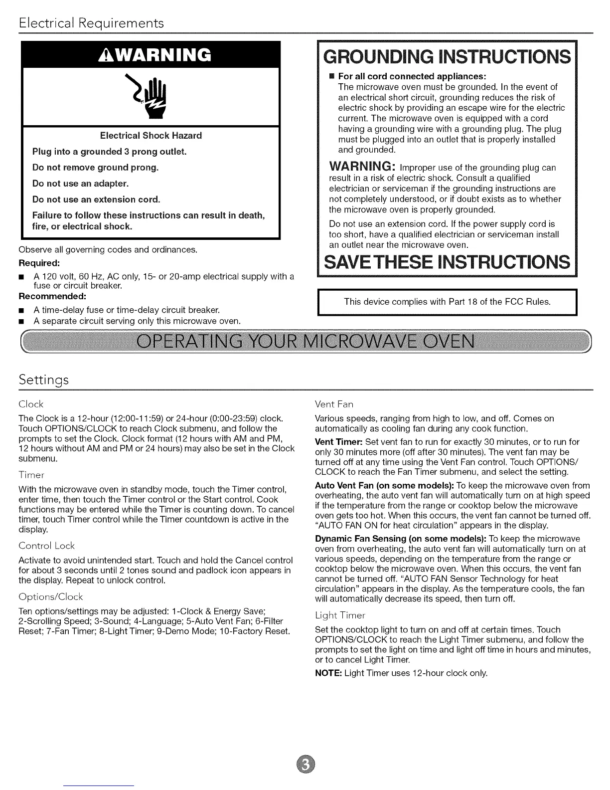 Auto Vent Fan (on some models}: To keep the microwave oven from