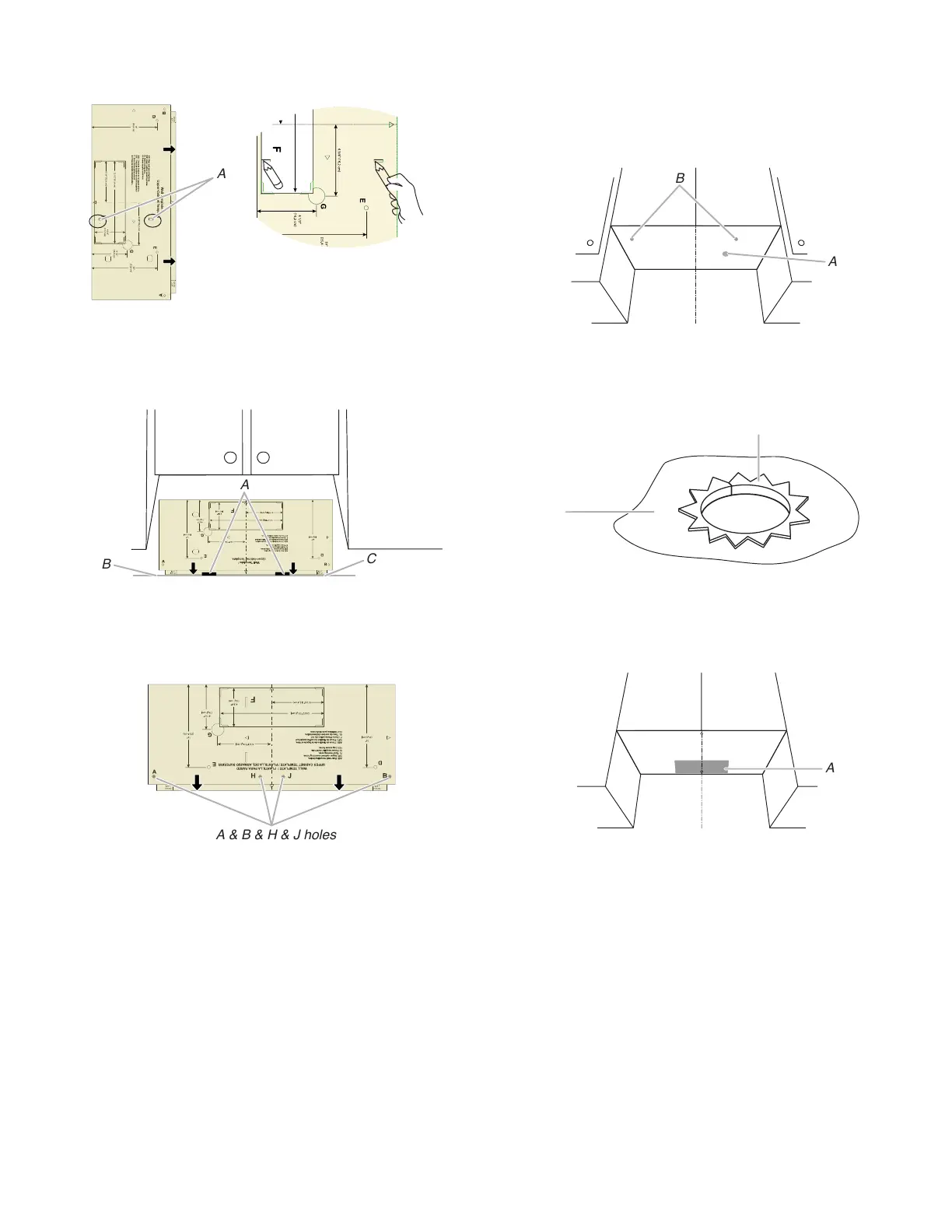 2. Drill two mounting nut holes (B), which are 3/8" (10 mm) holes