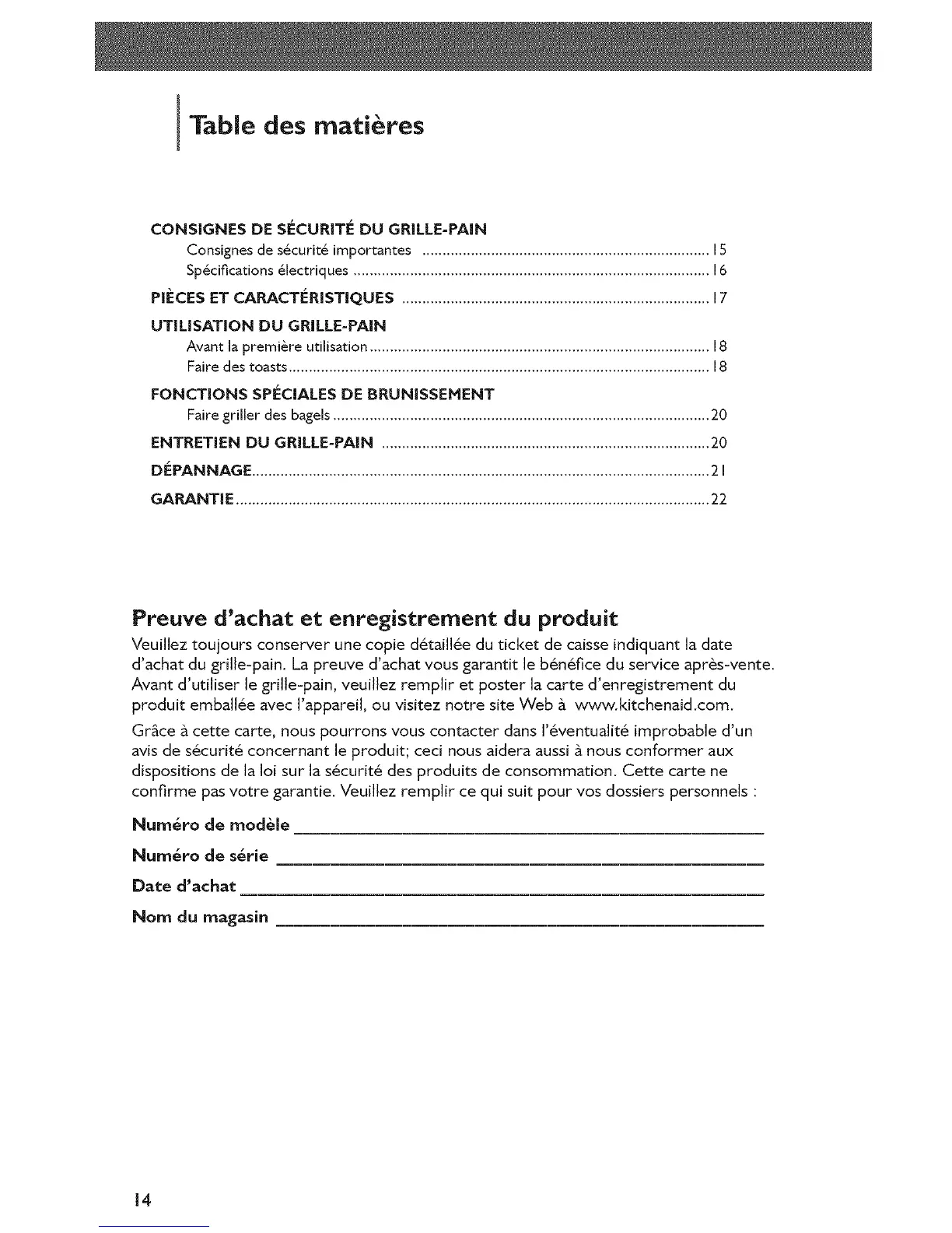 d'achat du grille-pain. La preuve d'achat vous garantit le b_n_fice du service apres-vente.