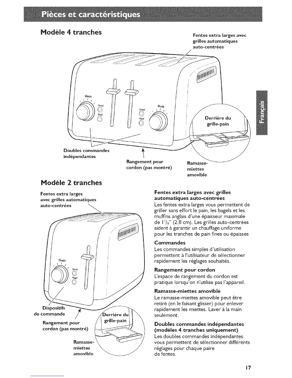 (modeles 4 tranches uniquement)