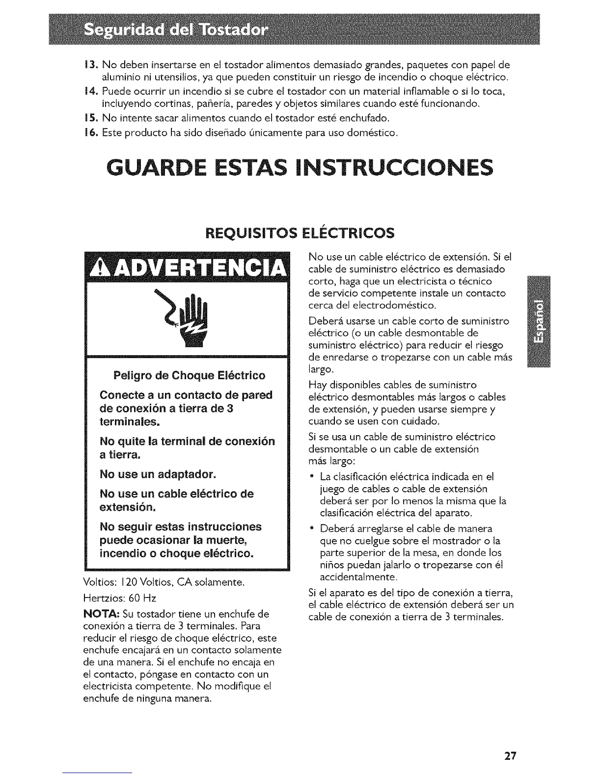 15. No intente sacar alimentos cuando el tostador est_ enchufado.