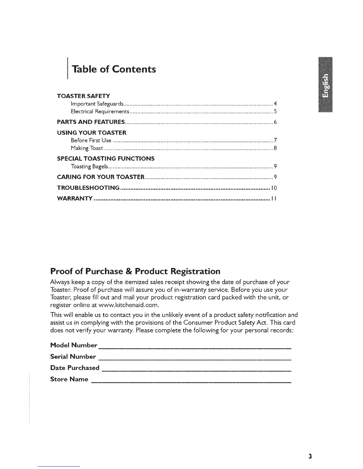 Toaster. Proof of purchase will assure you of in-warranty service. Before you use your
