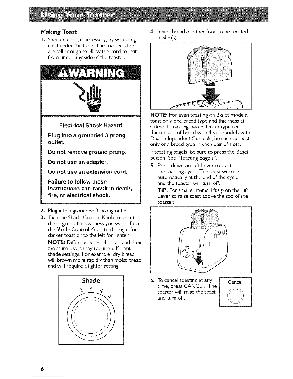 NOTE: For even toasting on 2-slot models,