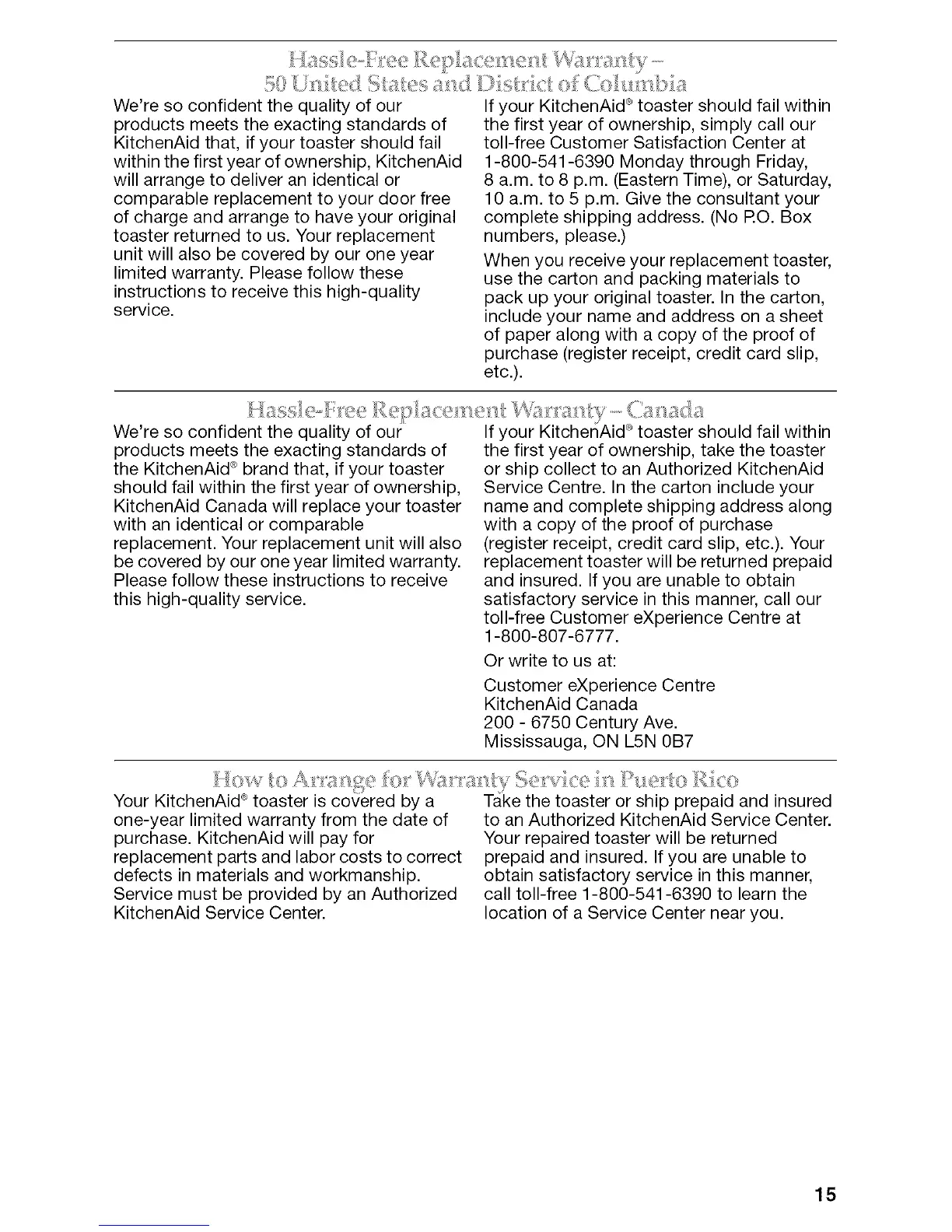 purchase. KitchenAid will pay for Your repaired toaster will be returned