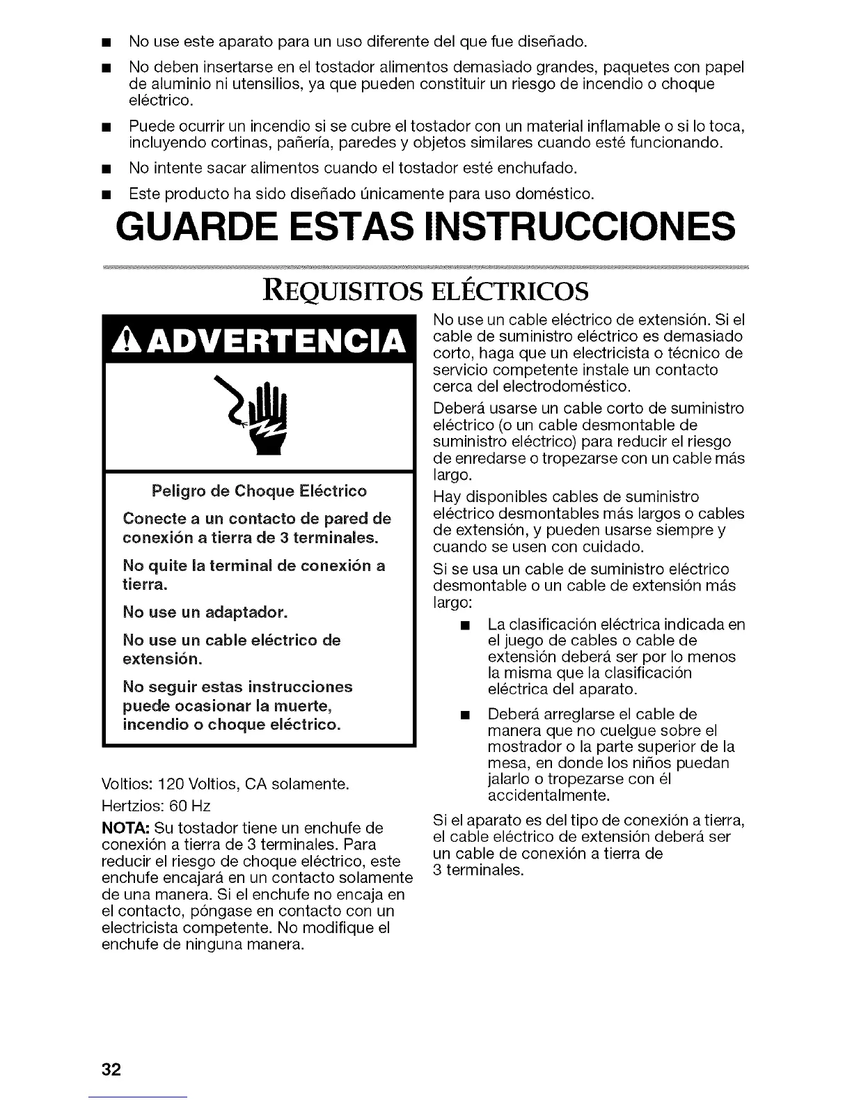 Voltios: 120 Voltios, CA solamente.