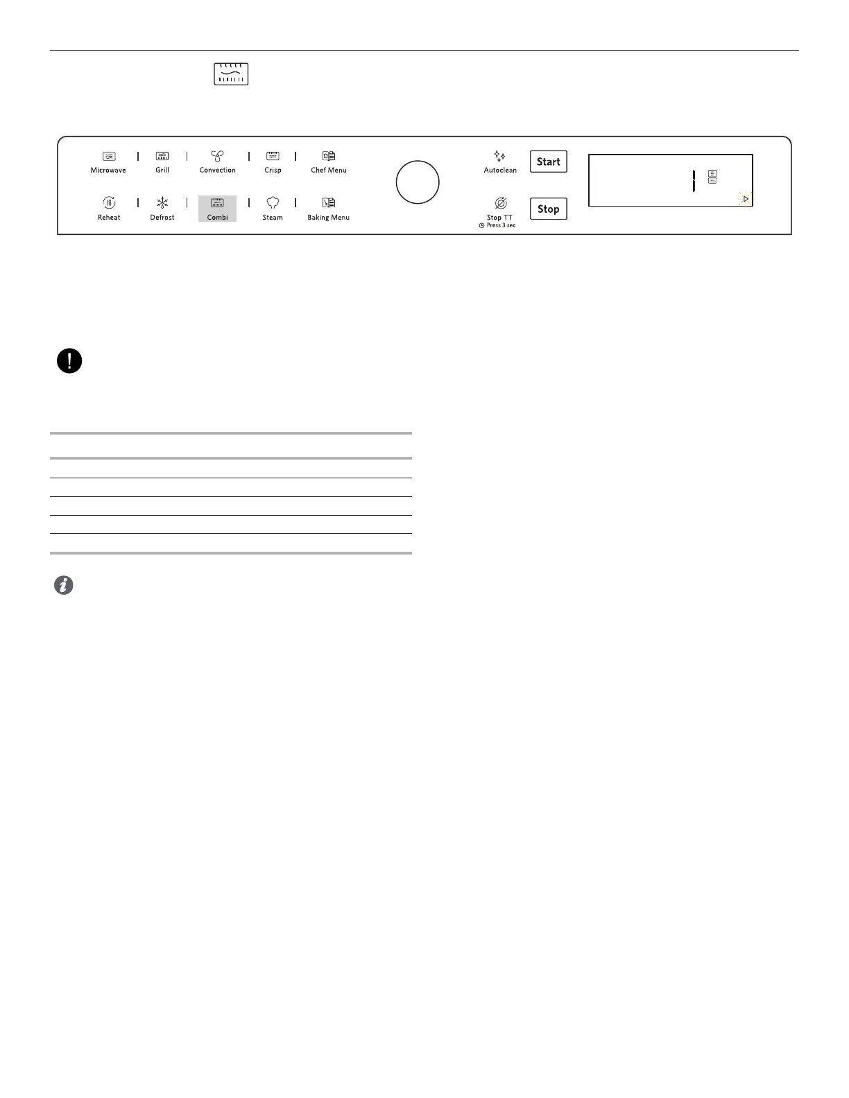 2. The display will show:” 1 “, press the Confirmation button / Start button to enter into Combi grill setting mode.