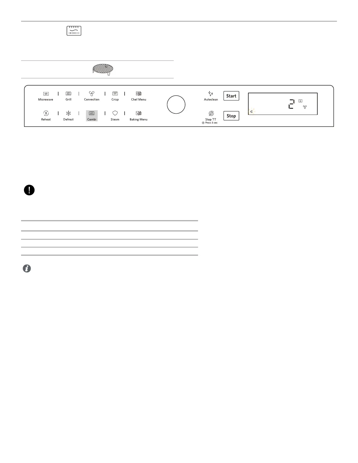 2. Rotate the Knob to see number “2” and press the Confirmation button / Start button to enter into Combi Convection setting mode.