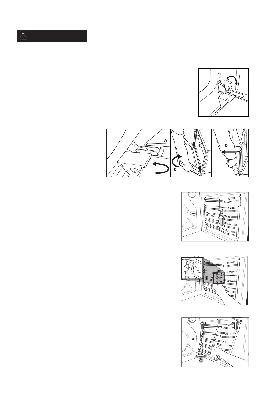 3. Close the door as far as it will go (A), lift it up (B) and turn it (C) until it is