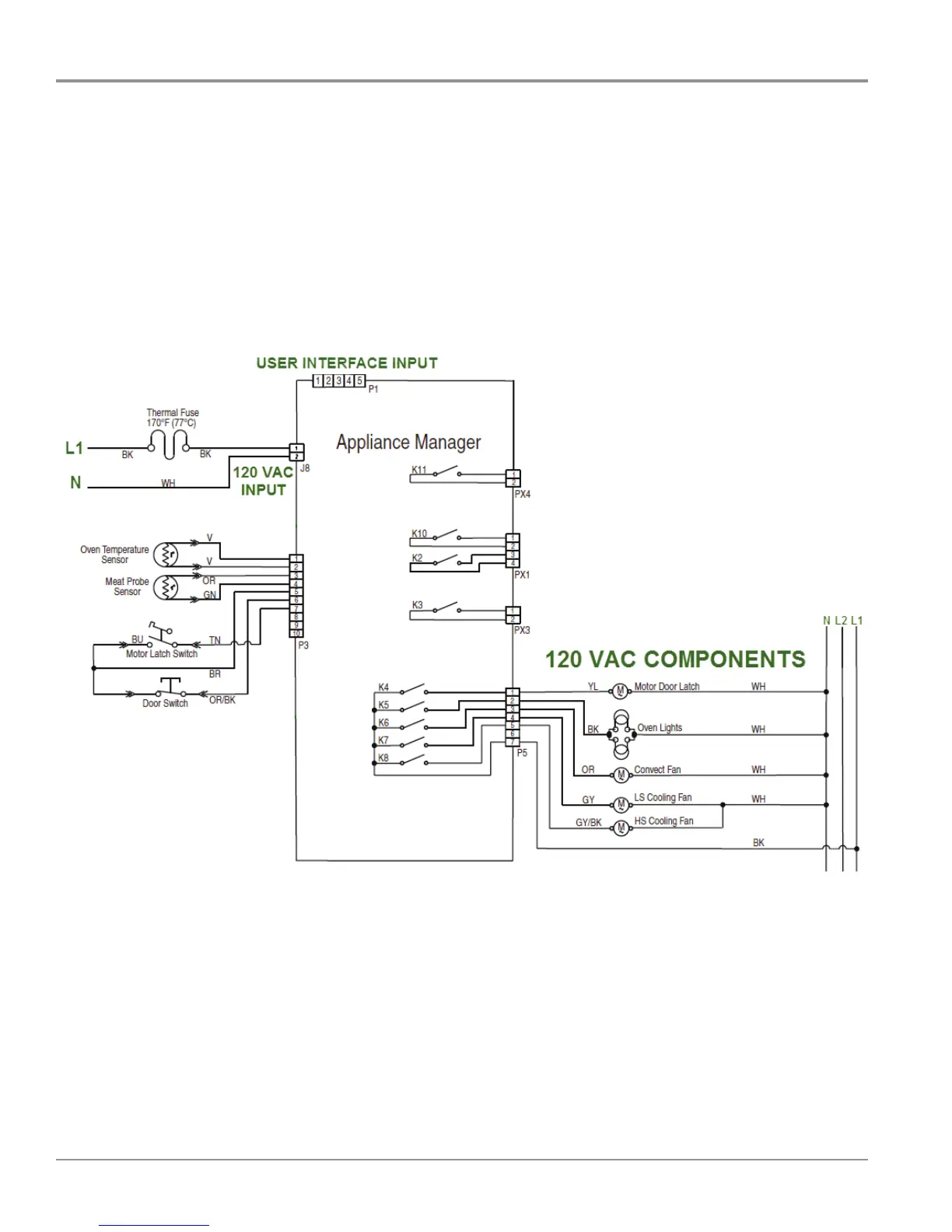 Once the oven is plugged in 120 VAC is supplied to the Appliance Manager at the J8 connector. This 120