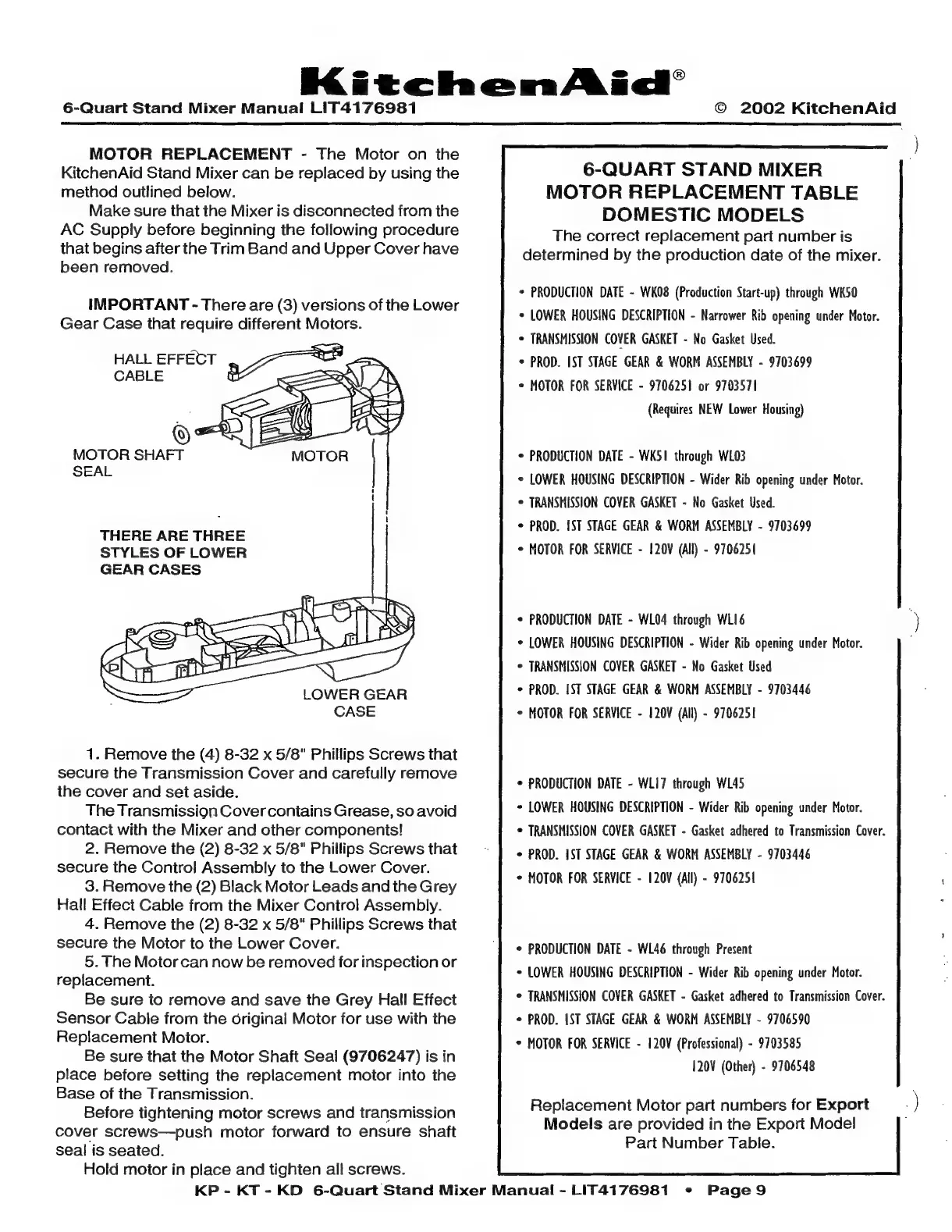 KitchenAid KP - Replacing the Stand Mixer Motor