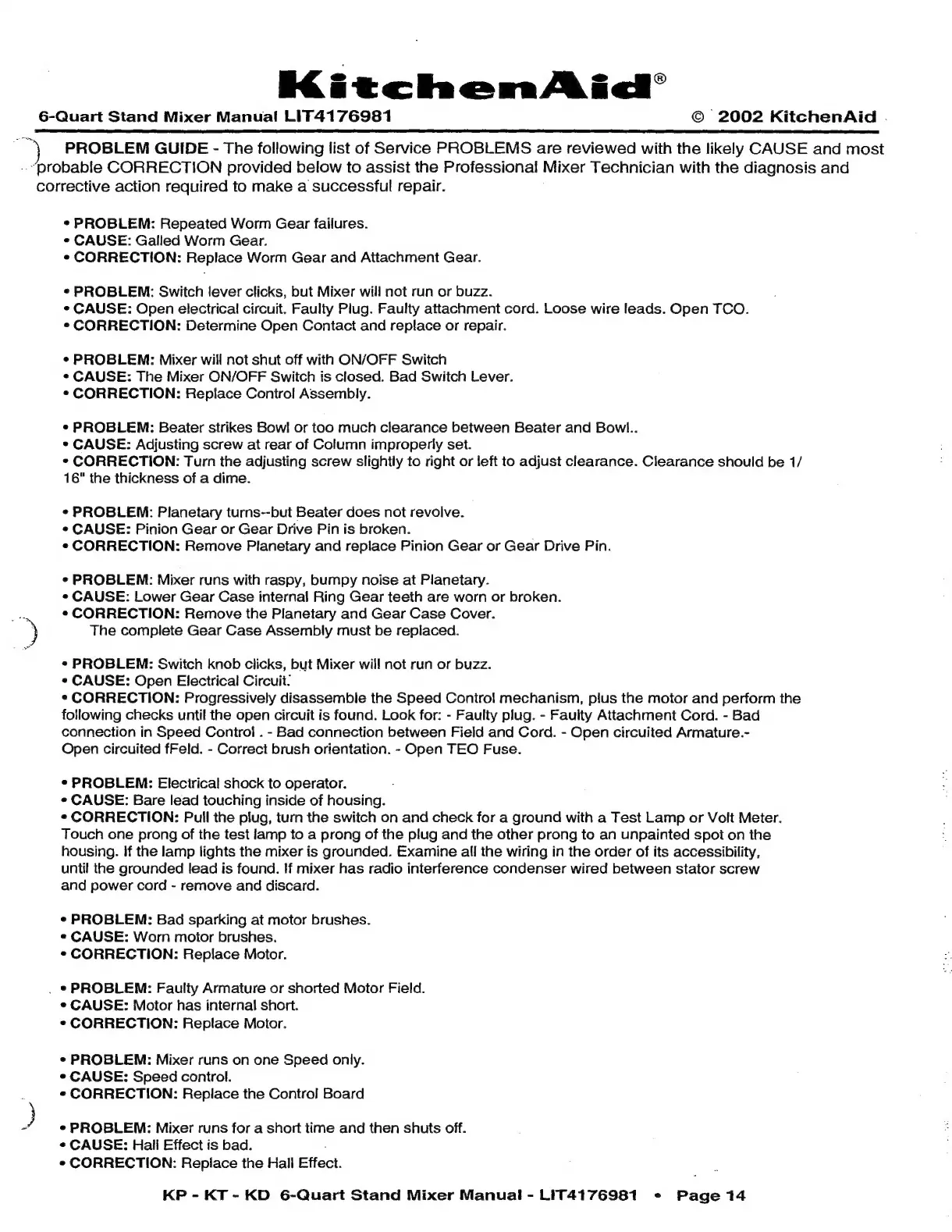 KitchenAid KP - KitchenAid Mixer Troubleshooting Problem Guide