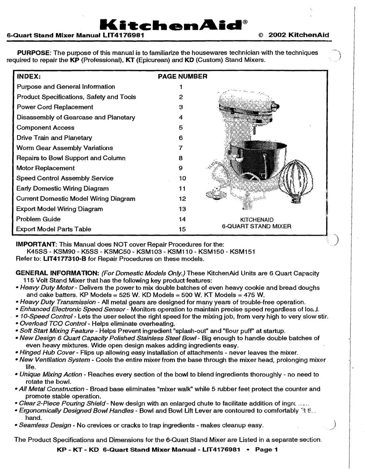KitchenAid KP - KitchenAid Stand Mixer General Information